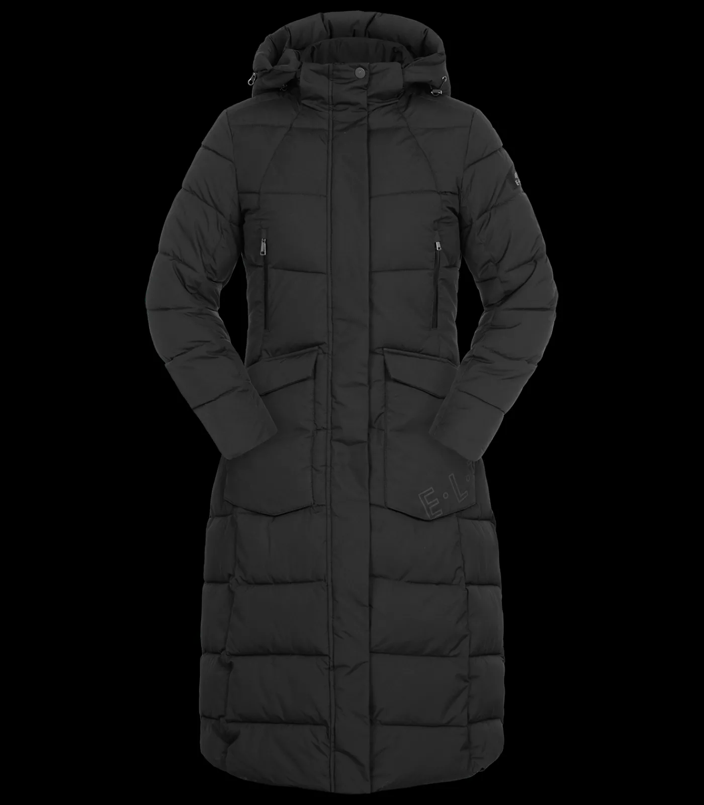 – Zwei große, aufgesetzte Pattentaschen mit Druckknopf und handwärmendem Fleecefutter. Linke Tasche mit E·L·T- Schriftzug