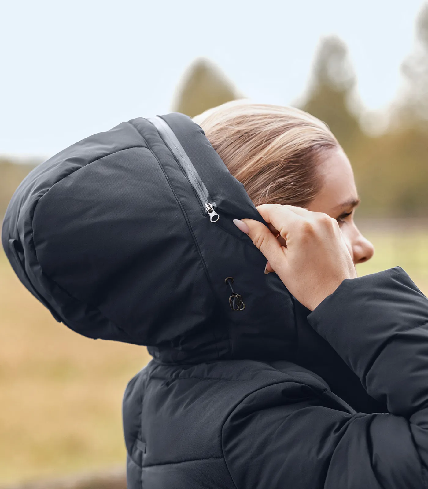 – Abnehmbare Kapuze mit Visor mit reflektierendem E·L·T-Schriftzug, verstellbar und am Rücken fixierbar