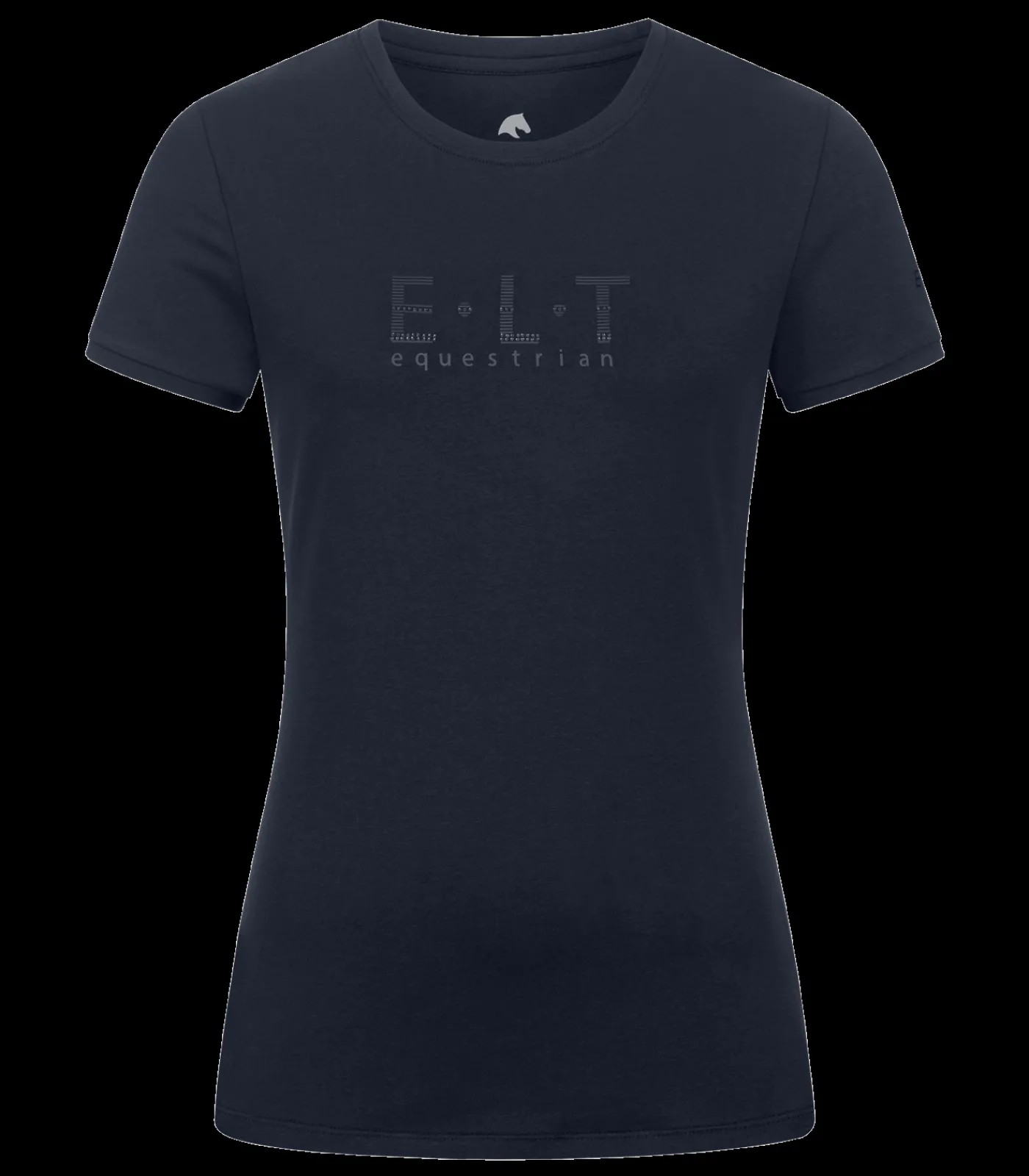– E·L·T Schriftzug aus Folienprint kombiniert mit Strasssteinchen am Vorderteil