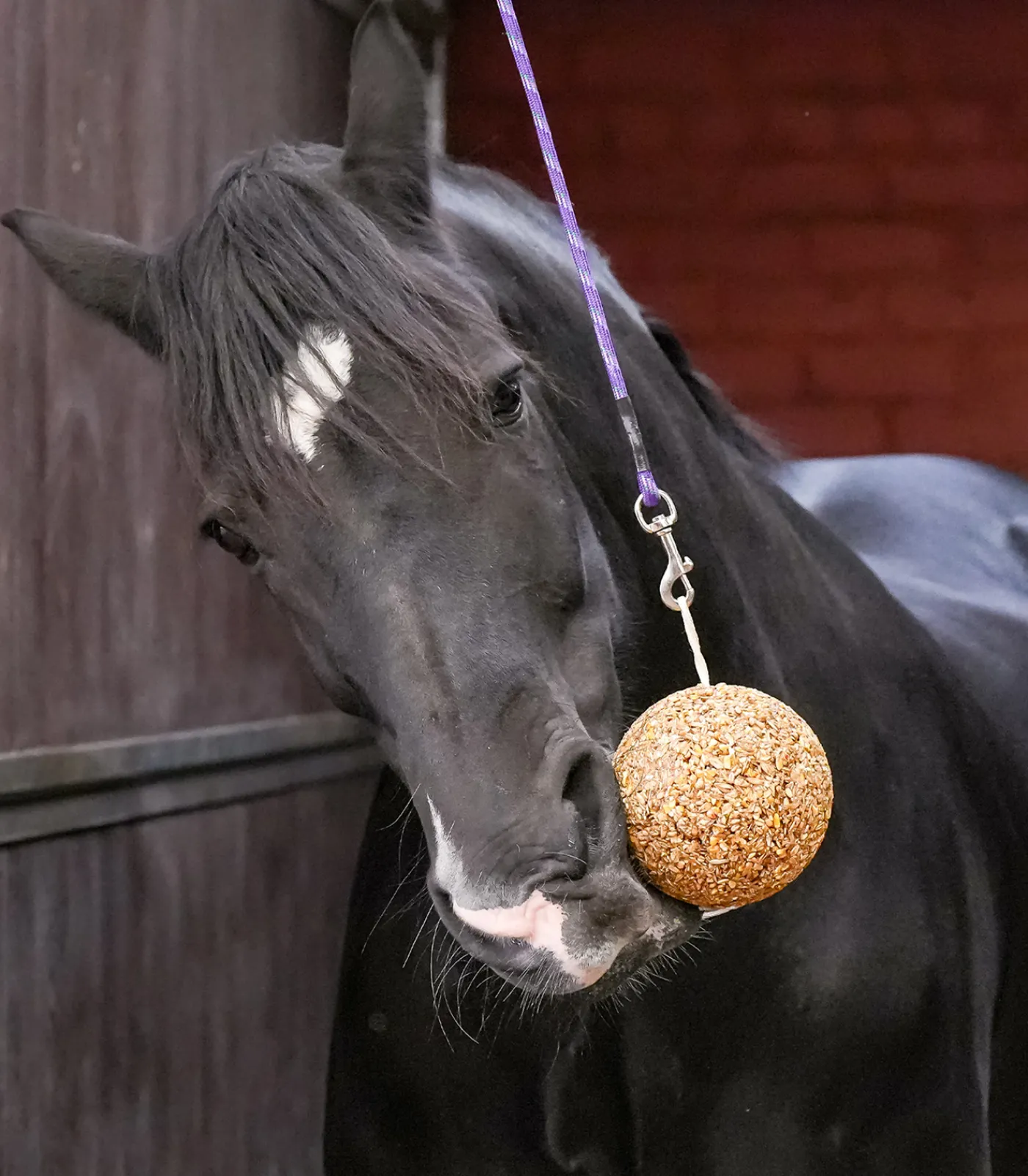Bereichern Sie das Leben Ihres Pferdes mit der Likit Müslikugel, vollgepackt mit schmackhaften Körnern (Hafer, Gerste, Mais und Vollkorn). Die Müslikugel ist so konzipiert, dass sie frei im Stall aufgehängt werden kann, um Stress und Langeweile vorzubeugen.