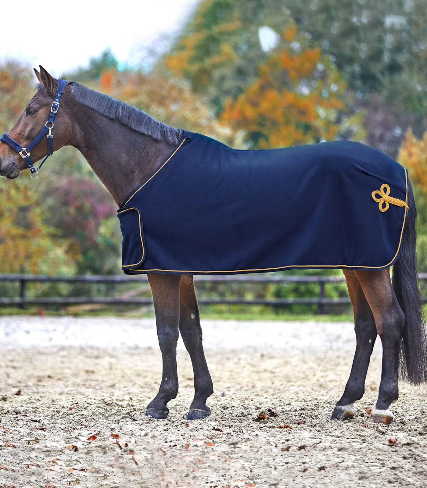 Extra weiche und hochwertig verarbeitete Paradedecke in schönem Design und mit hoher Funktionalität. Aufwendig verarbeiteter Zierschweifriemen und Kordel in Kontrastfarbe. Bietet viel Platz für Ihr Sponsorenlogo oder für Beschriftungen. Klassischer Frontverschluss, Schweifkordel und flauschiges Widerristpolster runden den stilvollen Auftritt ab. Mit Brustlatz. Lieferung ohne Waldhausen-Druck.