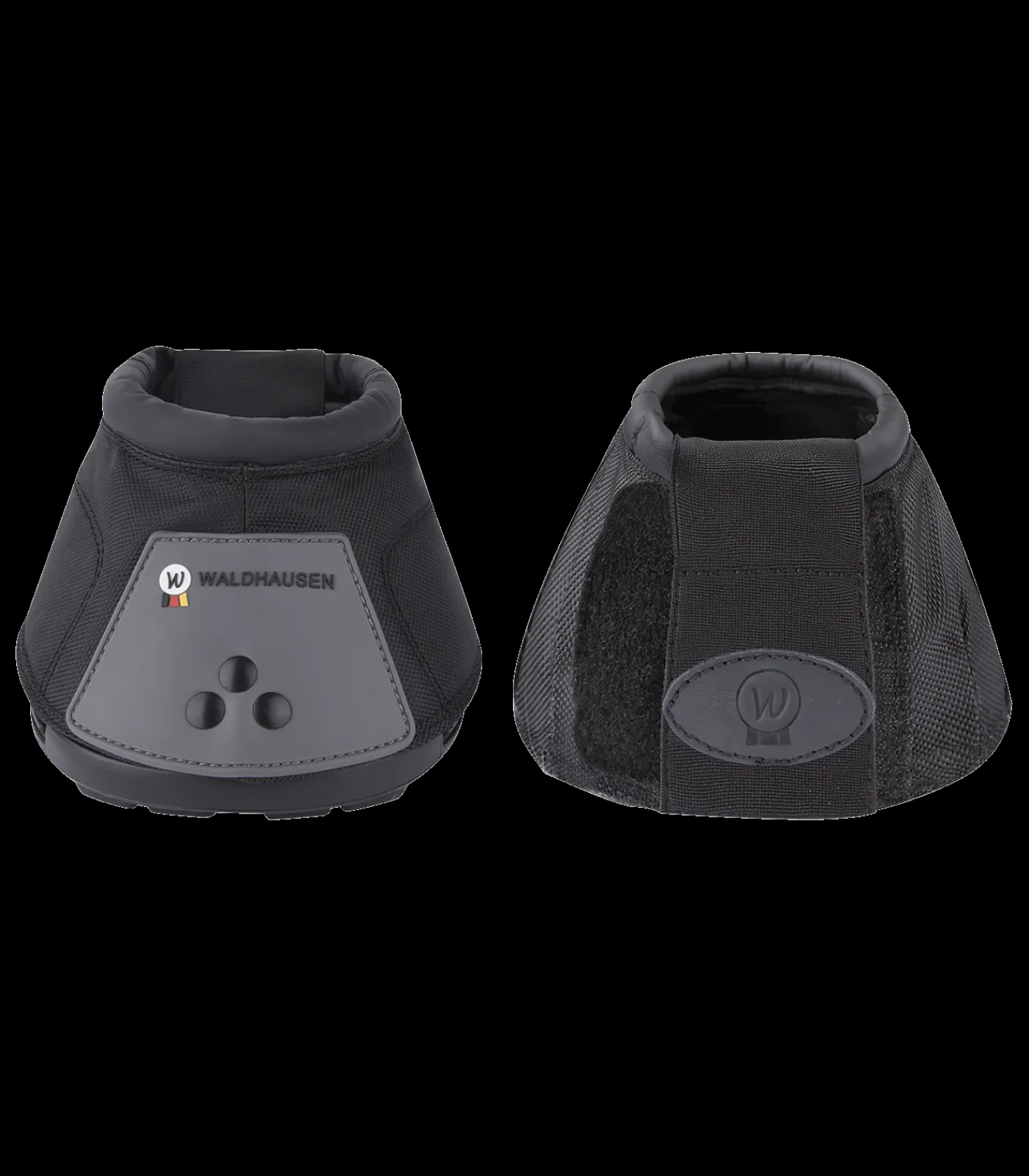 Perfekter Halt und leichtes Anbringen durch einen Doppelten-Klettverschluss. Der Hufschuh wird an der Rückseite geöffnet, die Seitenteile zur Seite geklappt, sodass der Hufschuh leicht über den Huf gezogen und anschließend geschlossen werden kann. Die weiche Polsterung am Rand verhindert Scheuerstellen an den Fesseln. Das Waldhausen Frontschild schützt zusätzlich vor Verschleiß und stößen.
