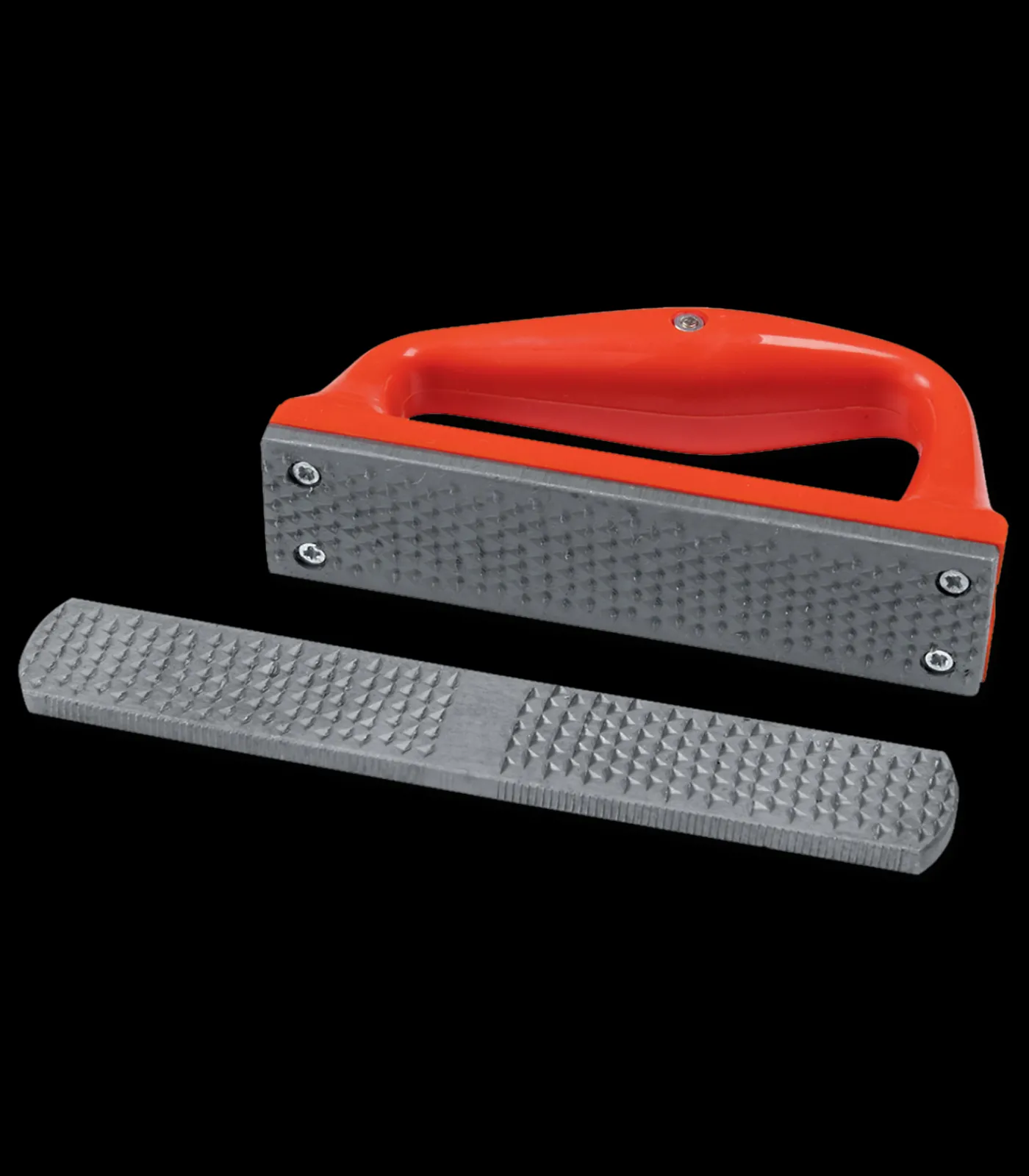 2-teiliges Hufraspel-Set. Enthalten ist eine leichte grobzahnige Hufraspel mit anatomisch geformtem PVC-Griff und eine Mini-Hufraspel mit Grob- und Feinzahnung, ohne Griff.
