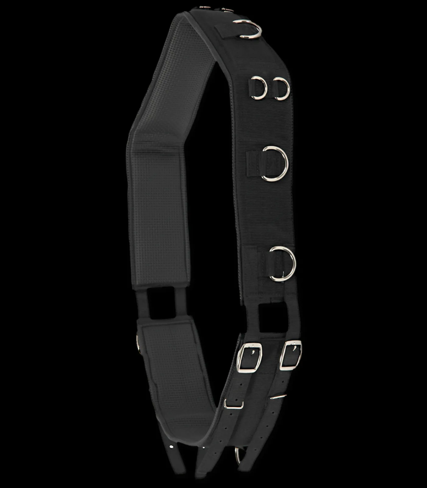 13 Ringe helfen bei der Führung der Longe bei Doppellongenarbeit und ermöglichen verschiedene Positionen für Hilfszügel. Die Innenpolsterung aus softem Gitterschaum bietet höchsten Komfort für das Pferd.