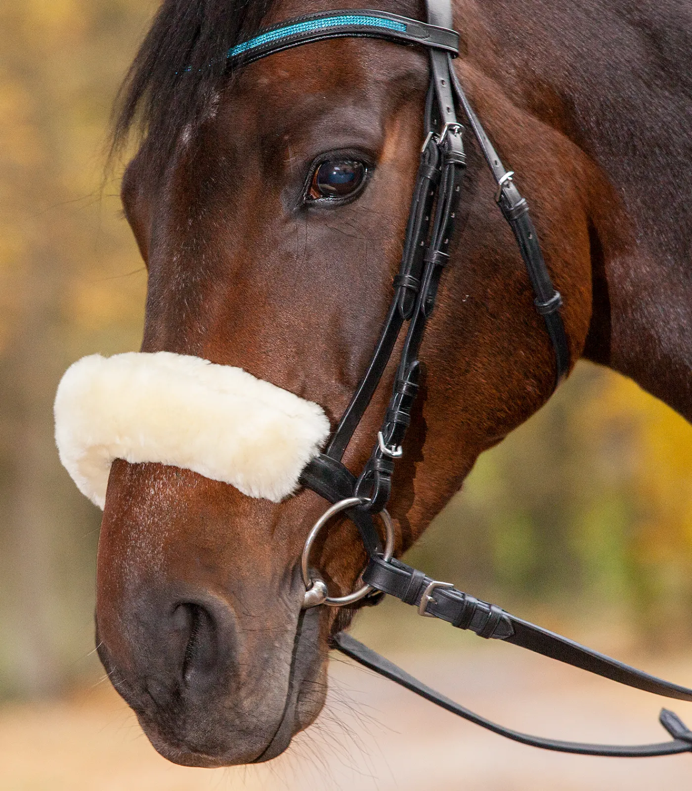 Weiches Lammfell-Polster zum Schutz des empfindlichen Nasenrückens oder des Genicks (mit Klettverschluß).