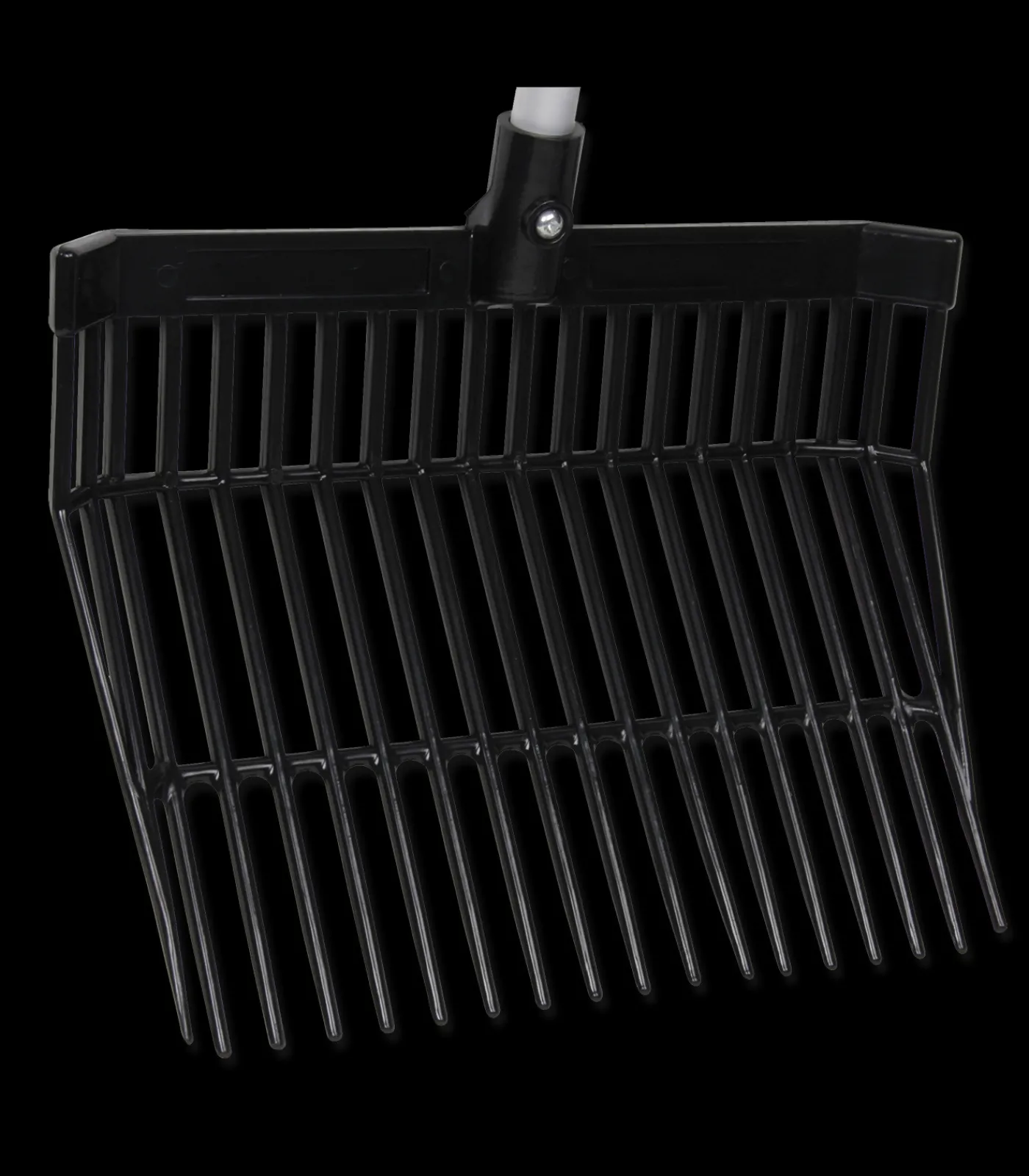 Bollengabel aus strapazierfähigem Kunststoff zur einfachen Entmistung von Torf- und Späneeinstreu. Die Seiten sind erhöht um ein seitliches Herausfallen zu verhindern. Ohne Stiel.