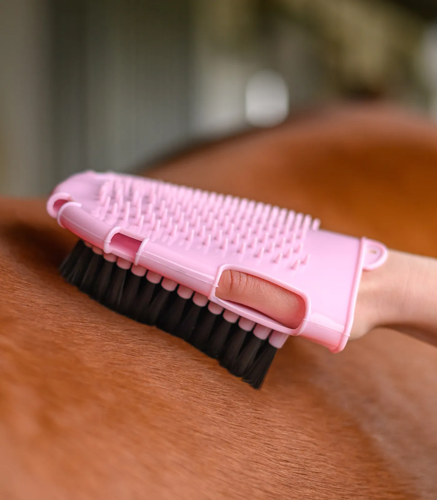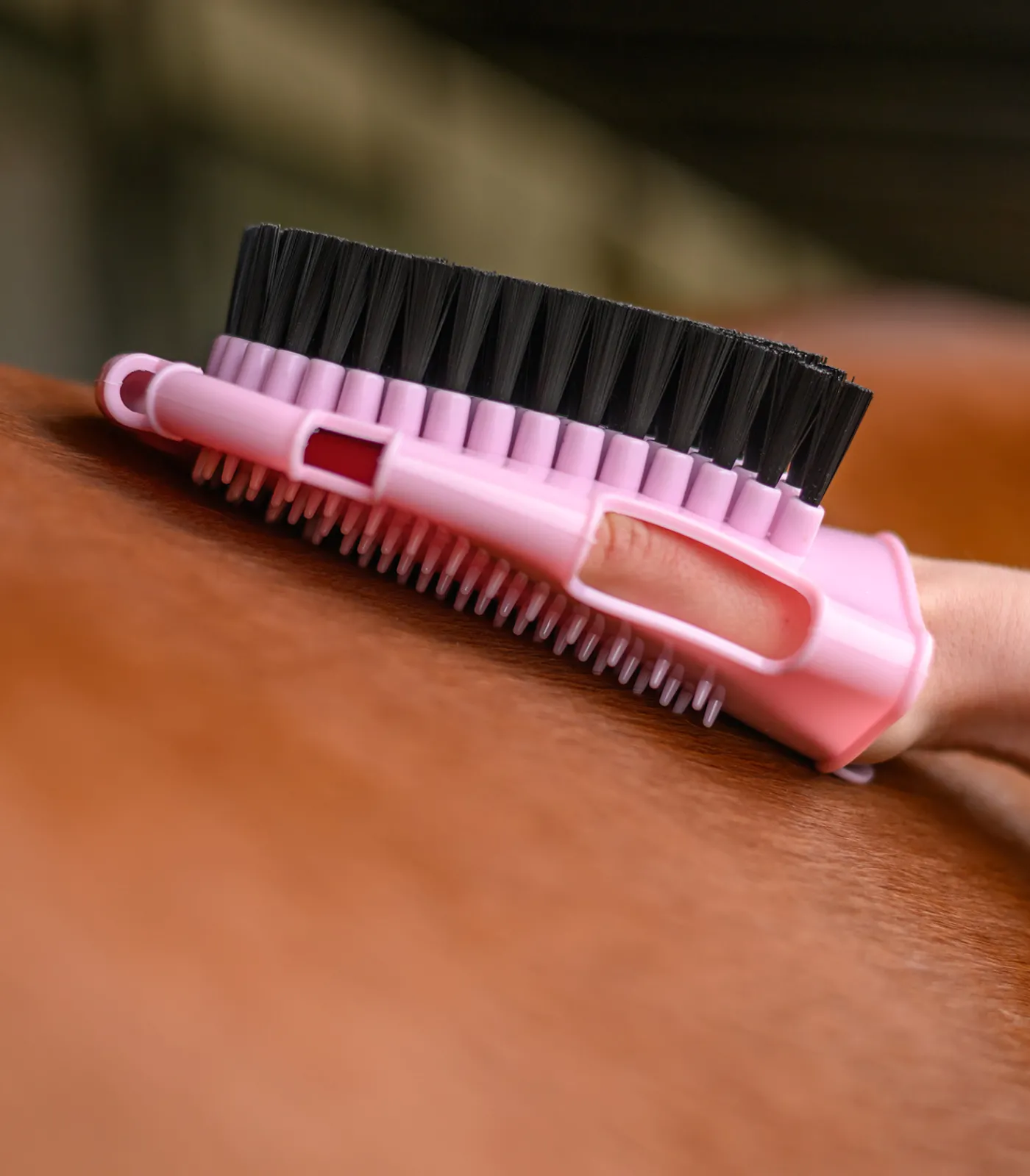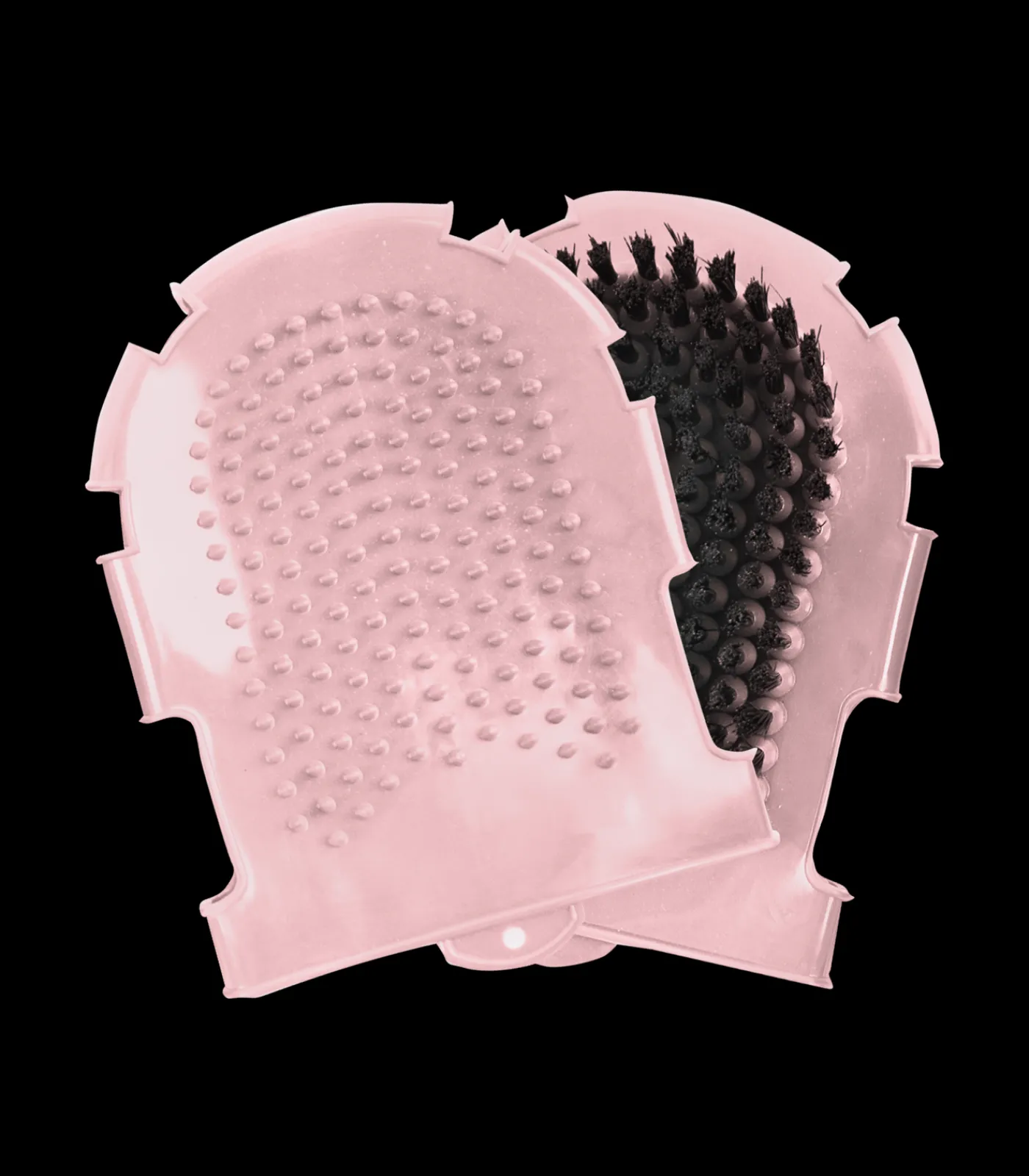 Eine Seite Noppen, eine Seite kräftige, synthetische Borsten.