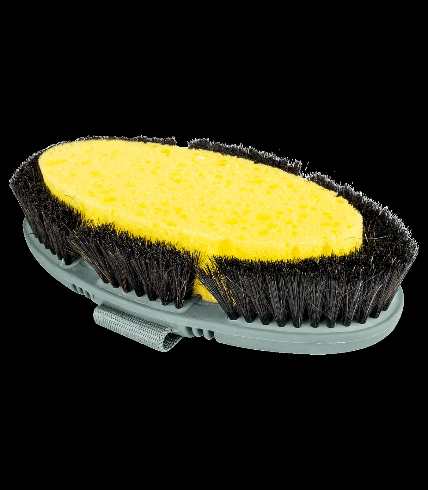 Mit der Kombination aus Ross- und Synthetikhaar und einem saugfähigen Schwamm bestens zum Waschen des Pferdes geeignet.