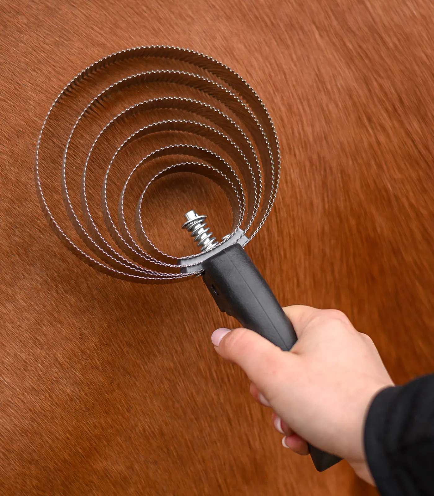 6 Edelstahlringe. Ideal während des Fellwechsels und zum Ausbürsten verklebter Stellen. Mit Kunststoffgriff.