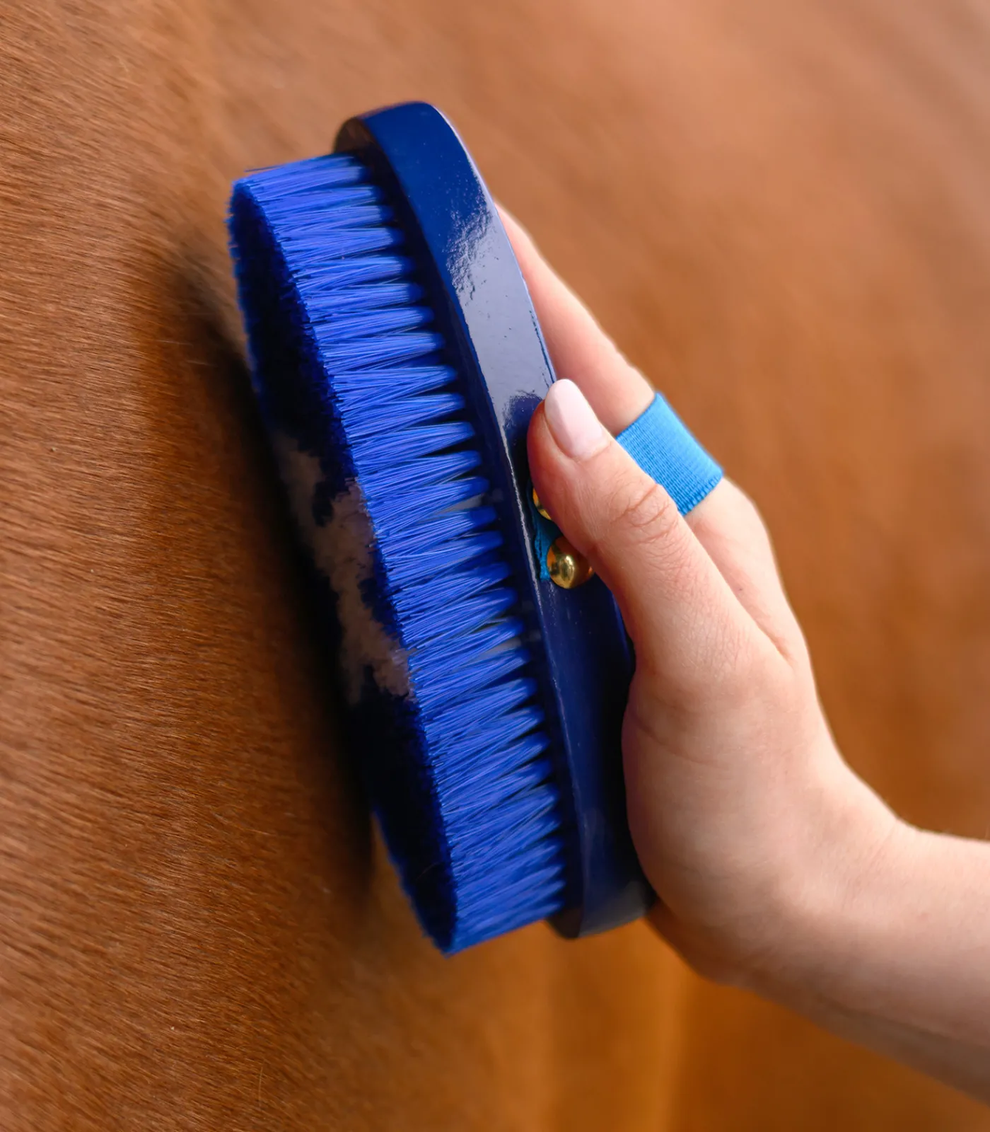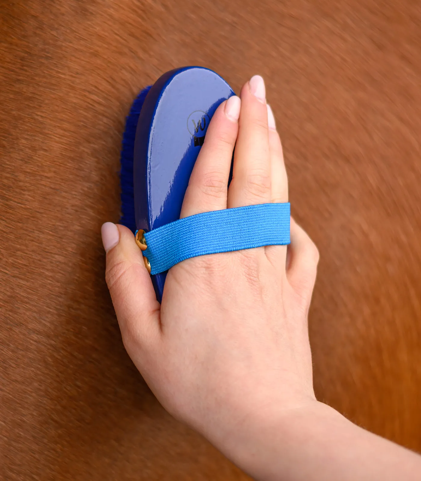 Weiche Synthetikborsten mit Pferdchen-Motiv. Elastische Handschlaufe.
