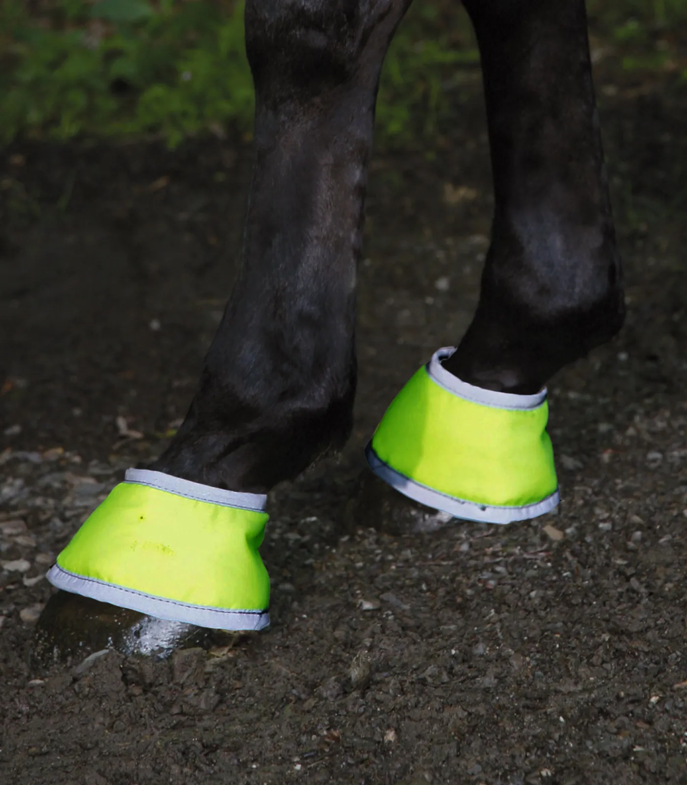 Hufglocken aus neongelbem Obermaterial und weichem Fleece-Innenfutter mit reflektierender Einfassung. Starker Klettverschluss für sicheren Halt. Paar.