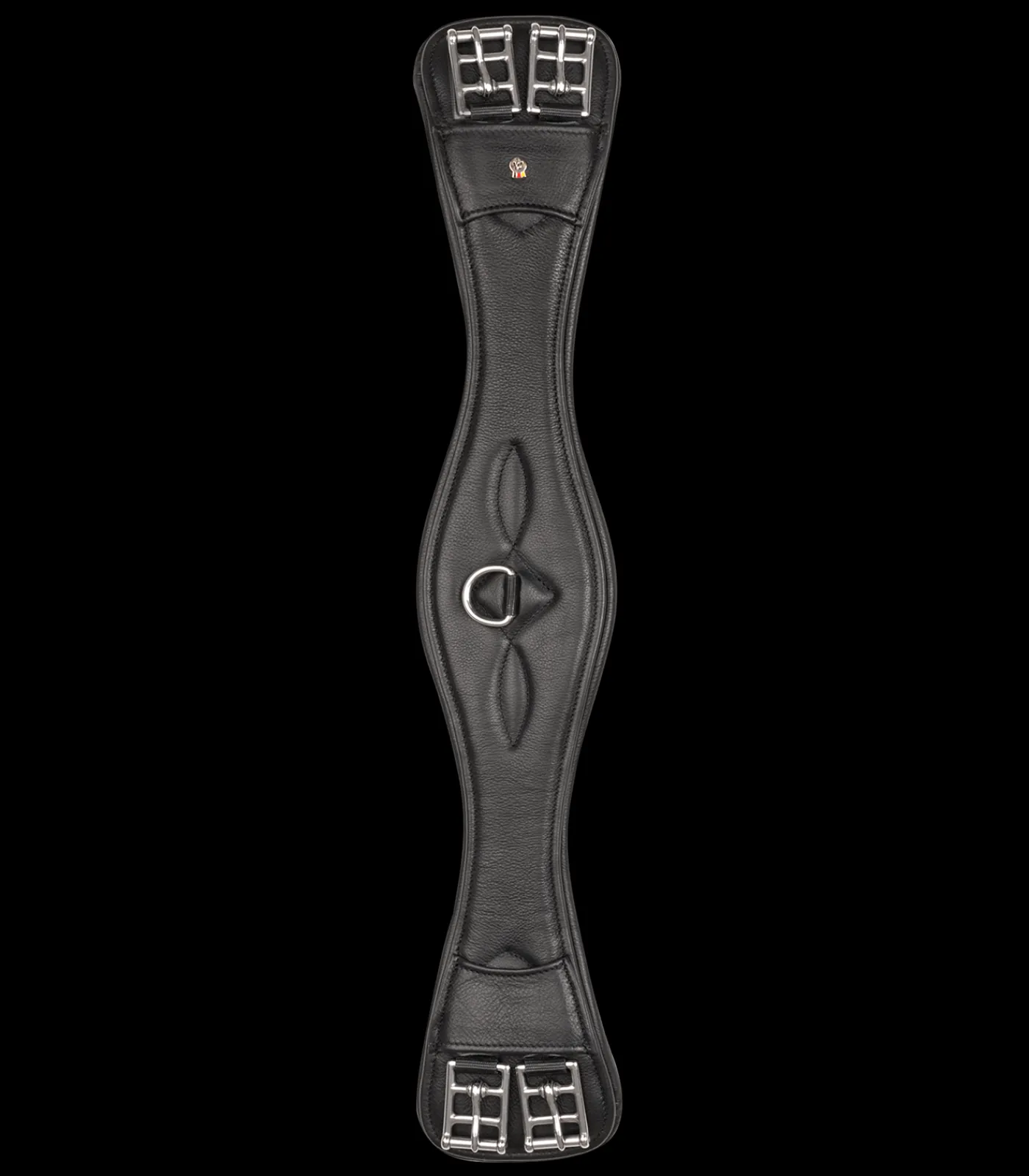 Softleder Kurzgurt mit idealer Druckverteilung durch die breite Brustplatte. Schmiegt sich angenehm an den Pferdekörper an und bietet somit einen optimalen Tragekomfort. Mit Edelstahl Rollschnallen. Ohne Elastik.