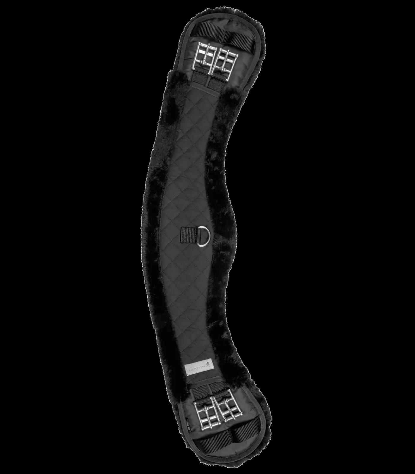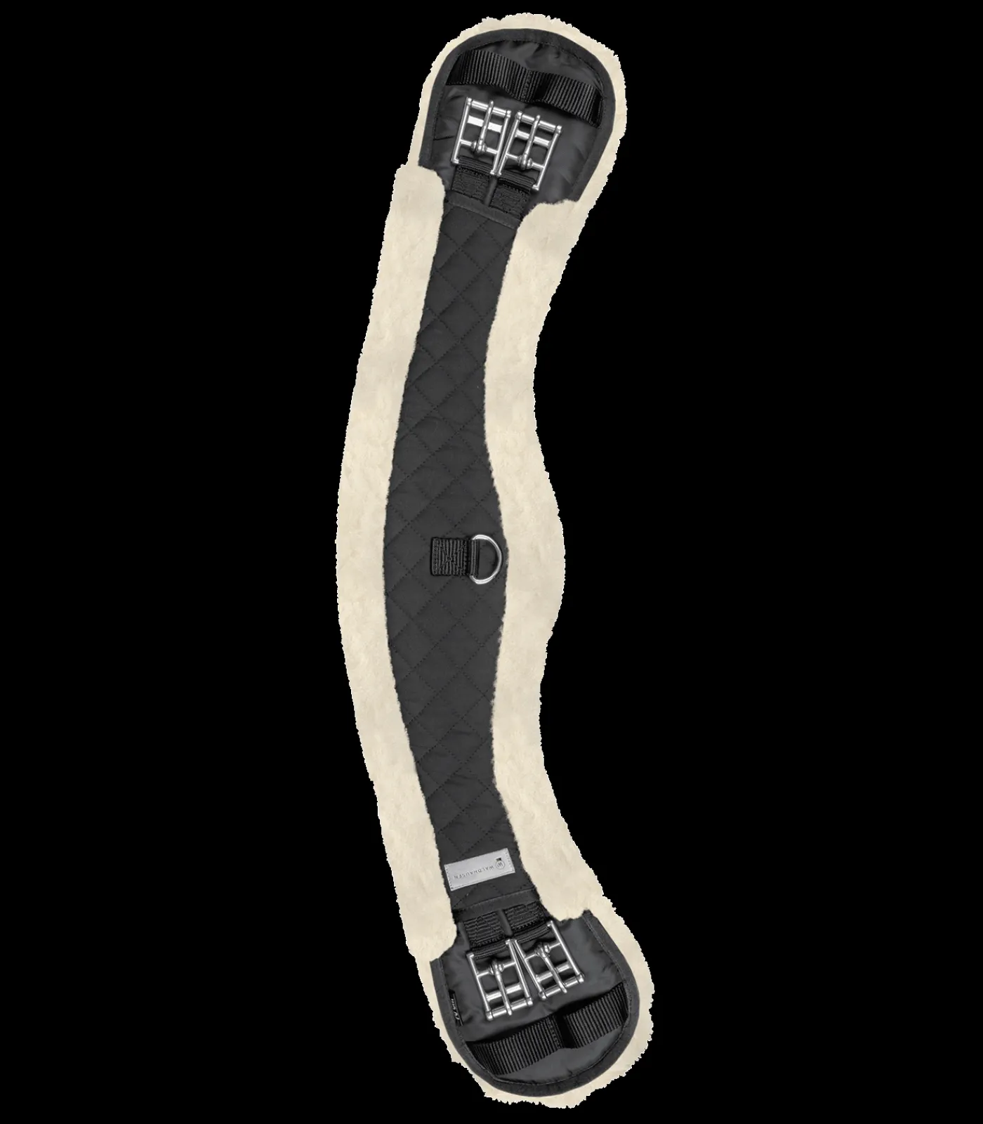 Kurzgurt, mit weichem synthetischen Fell unterlegt. Durch seine Form ist der Kurzgurt besonders für bauchige Pferde geeignet und beugt ein nach vorne rutschen des Sattels vor. Mit D-Ring und Rollschnallen aus Edelstahl. Ohne Elastik.