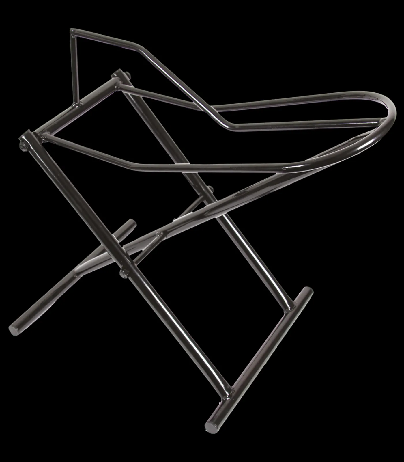 Praktischer Sattelständer für unterwegs. Ob für die Autofahrt oder das Turnier – der kostbare Sattel kann nun ordentlich aufbewahrt werden. Die stabile Metallkonstruktion kann bei Nichtgebrauch platzsparend zusammengelegt werden.