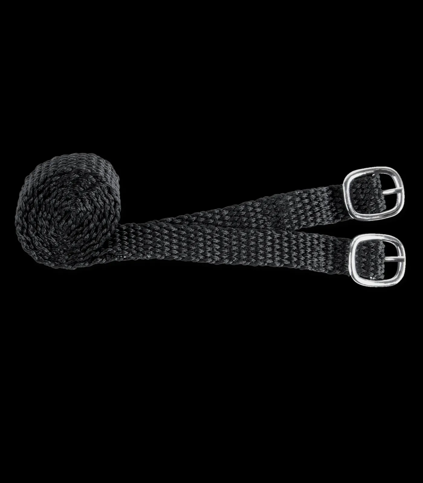 Sporen mit fixiertem Sporenschutz und Nylon-Sporenriemen, rostfrei. Der fixierte Sporenschutz wirkt dem Verrutschen des Sporens entgegen und schont den Reitstiefel, Paar.