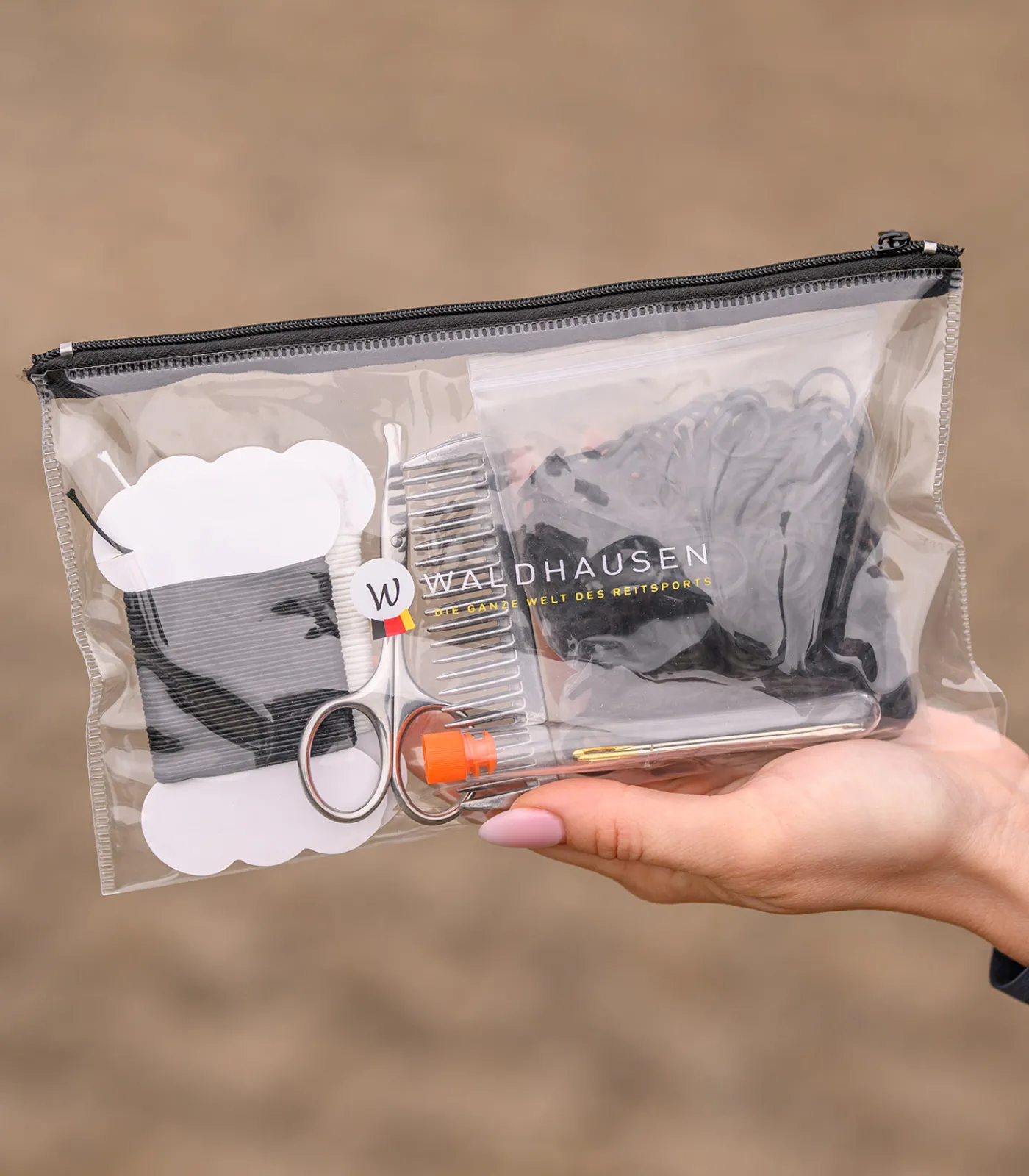 Der optimale Begleiter auf dem Turnier. Das Waldhausen Mähnen Einflecht Set besteht aus Mähnengummis, einem Einflechtkamm, einem Nadelset, einer Schere sowie speziellem Einflechtgarn. Das Set wird in einer ansprechenden Tasche geliefert.