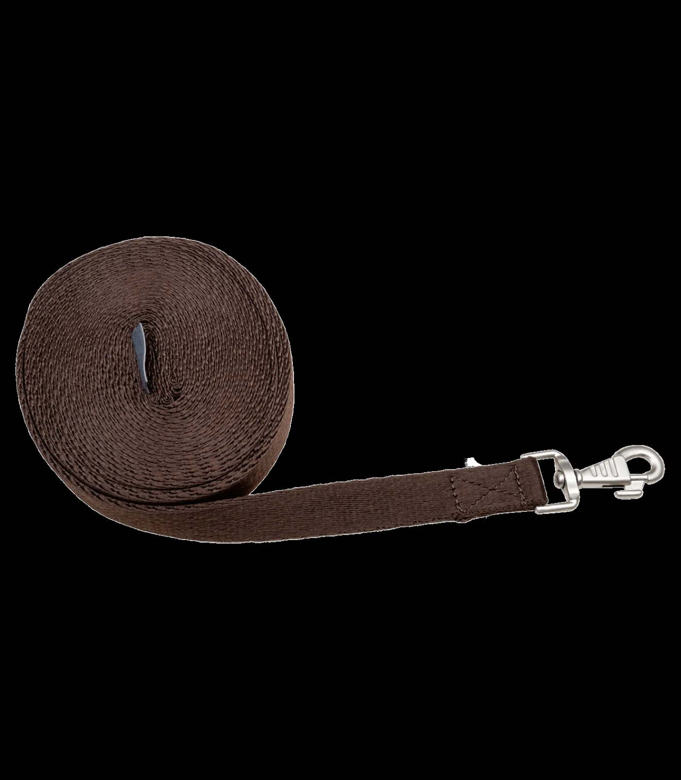 Extra weiche, griffige und handfreundliche Longe mit einer Handschlaufe. Mit Drehkarabiner.