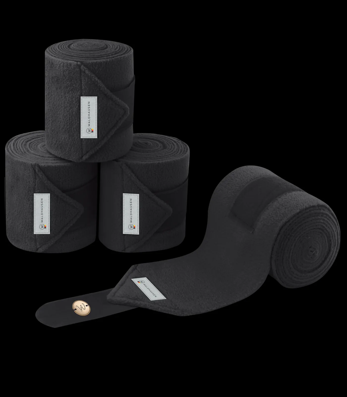 Hochwertige Fleecebandagen aus 380g/m² Antipilling Fleece, mit kleinem Metallplättchen.
