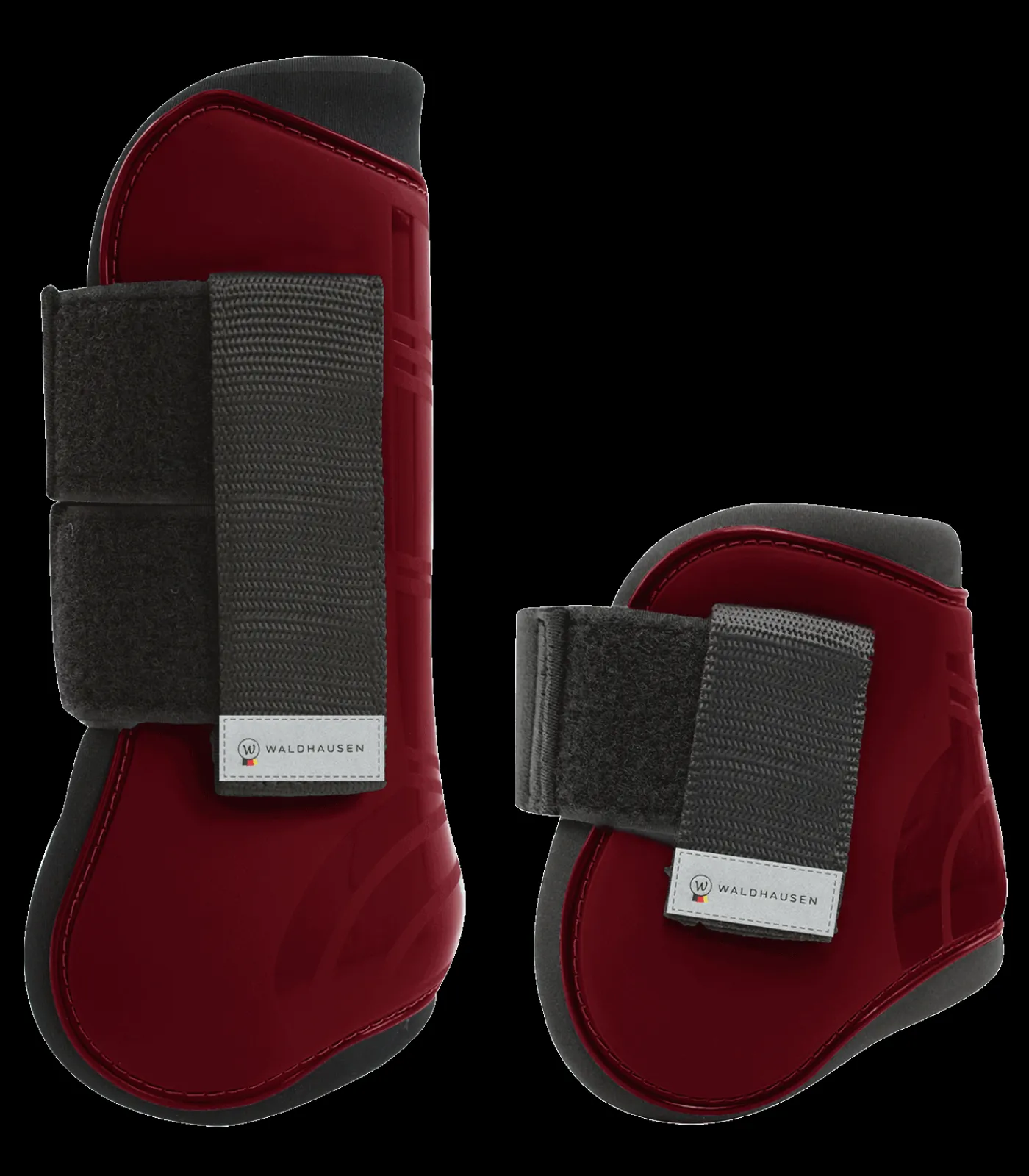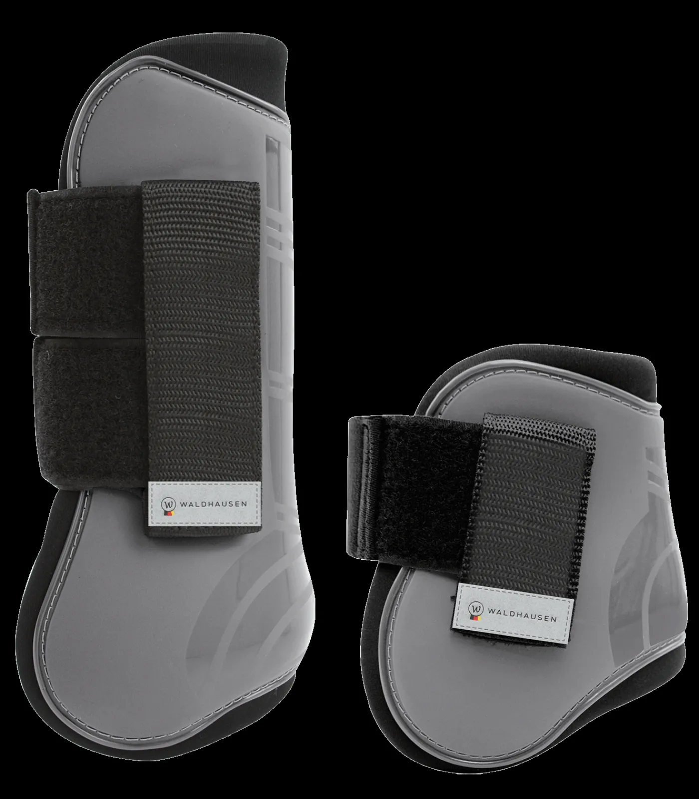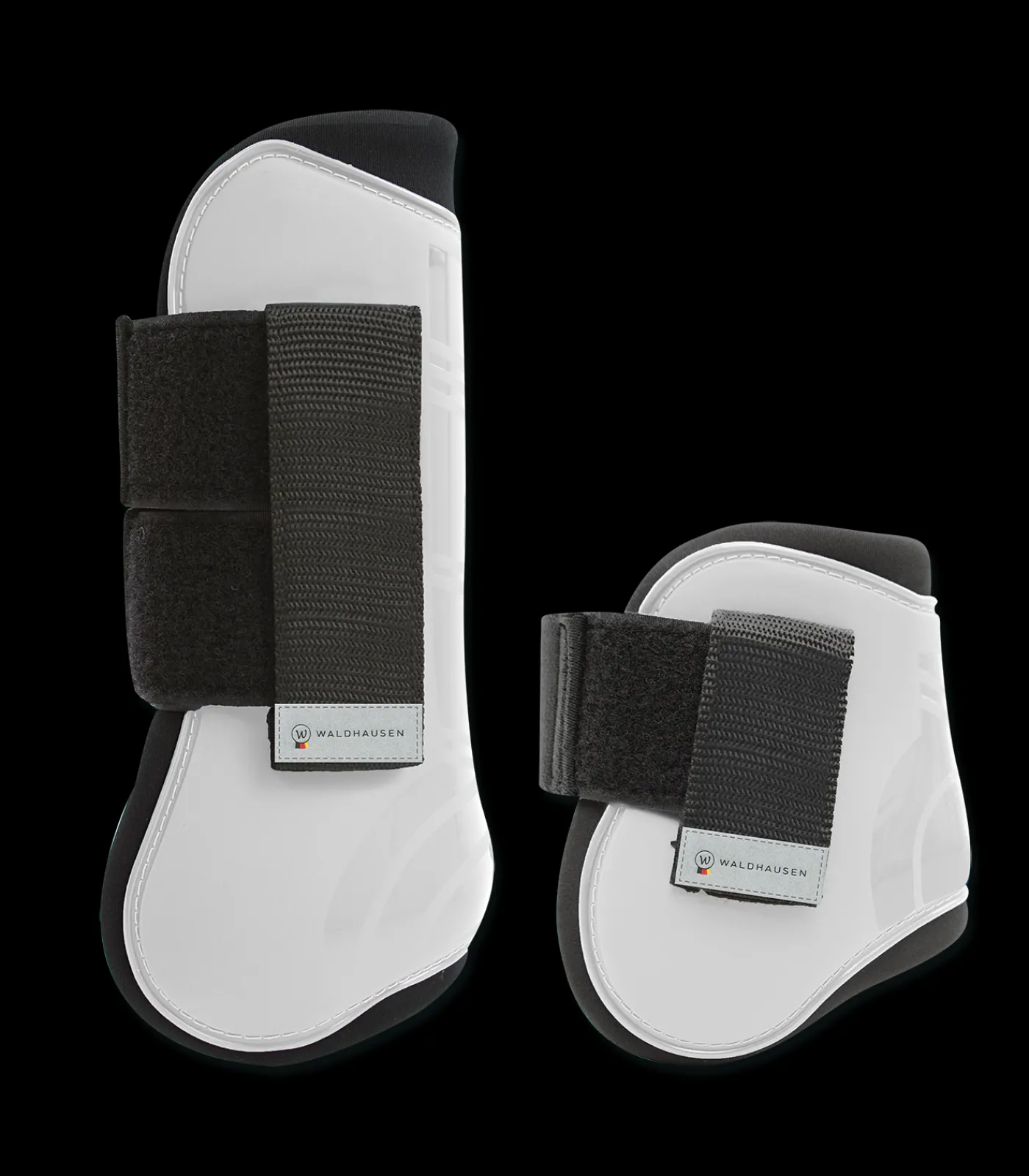 Schlagfeste Außenschale mit stoßabsorbierender Polsterung und weichen Soft-Zonen für komfortablen Schutz der Pferdebeine. Hochwertiges Elastik mit Klettabschlüssen und Überschlagfixierung für eine optimale Anpassung und sicheren Halt – auch in extremen Situationen. Set.