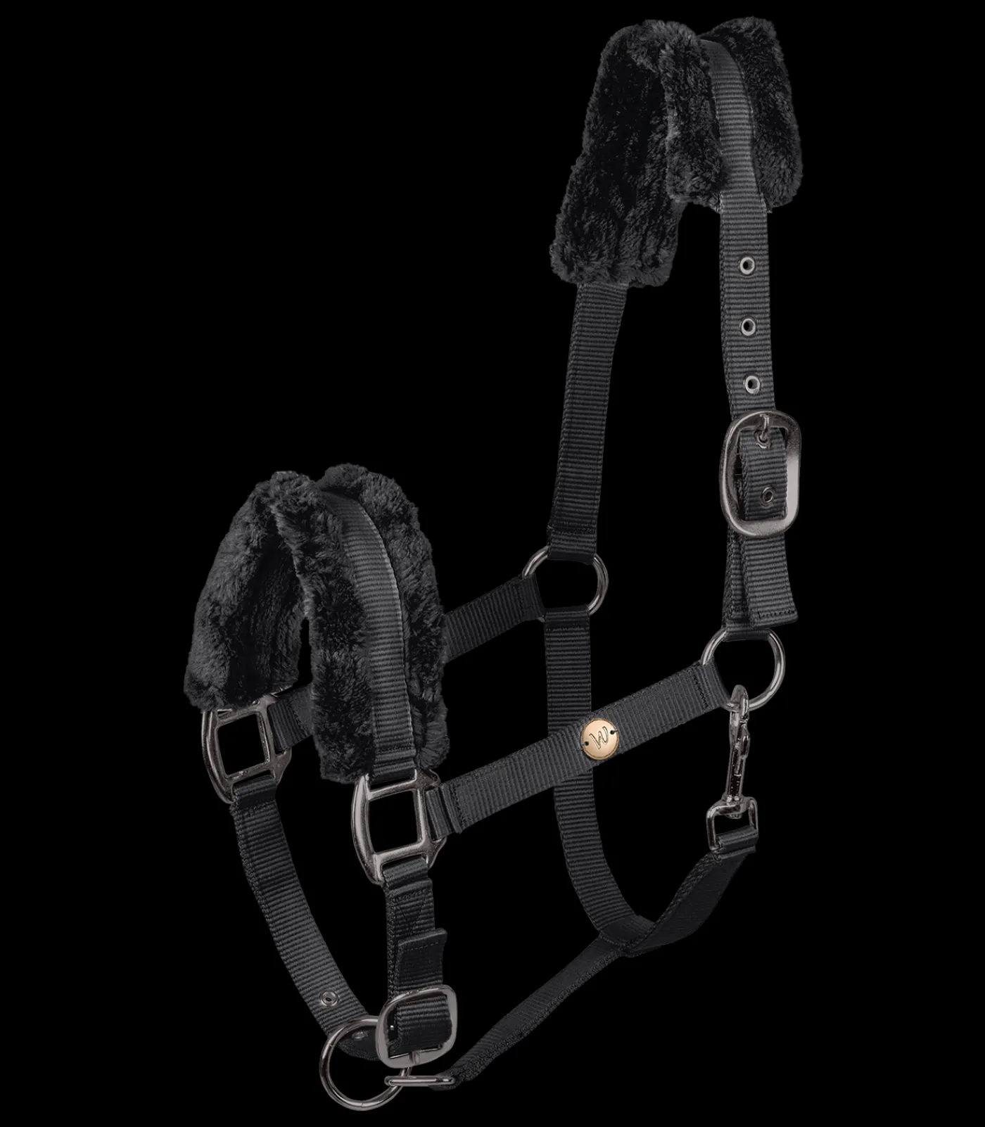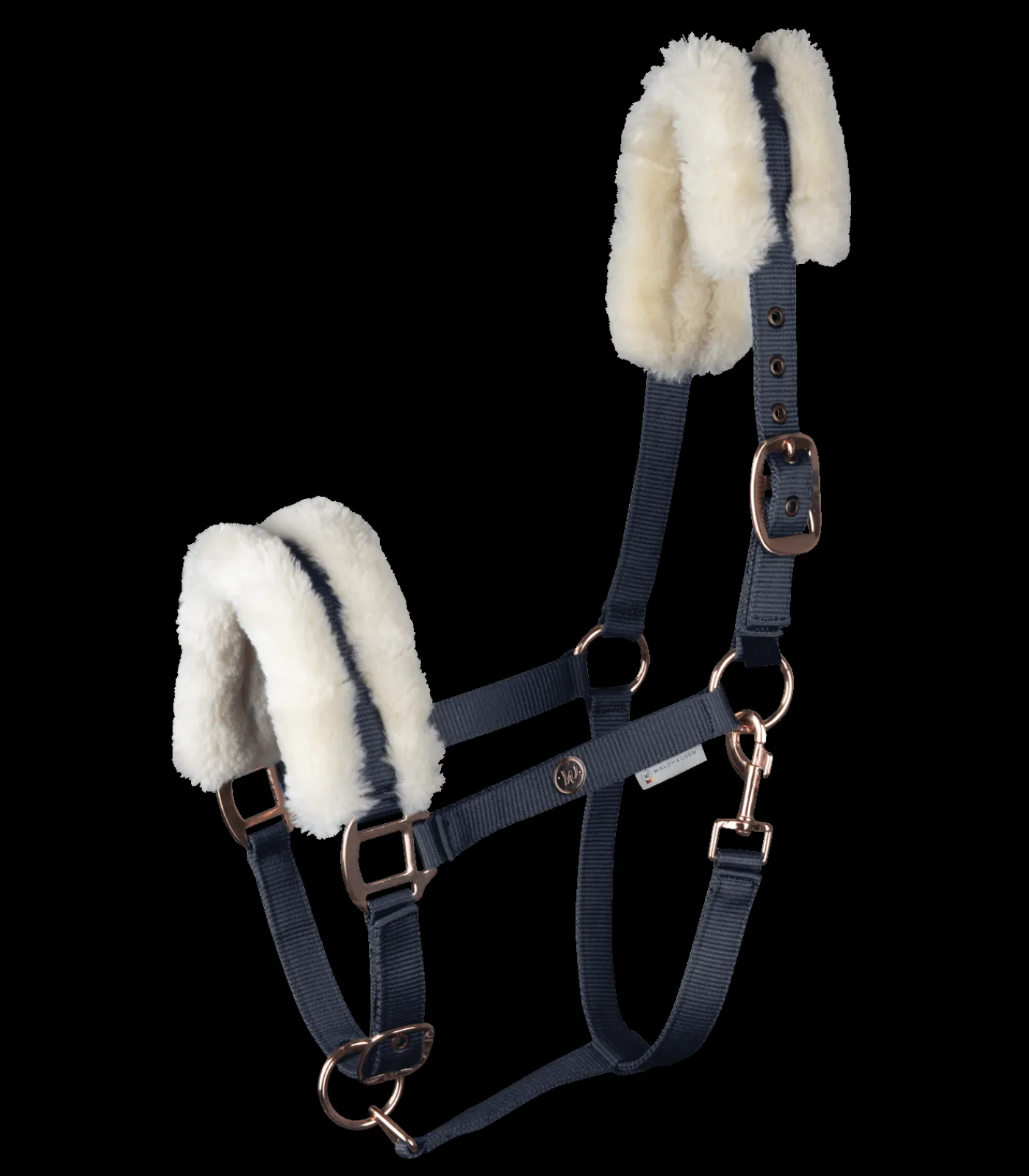 Elegantes, modernes Halfter mit hochwertigen Beschlägen und einem kleinen Metallplättchen. Das Genickstück sowie der Nasenriemen sind mit weichem Synthetik-Fell gepolstert. Passend zu unserer Modern Rosé Kollektion
