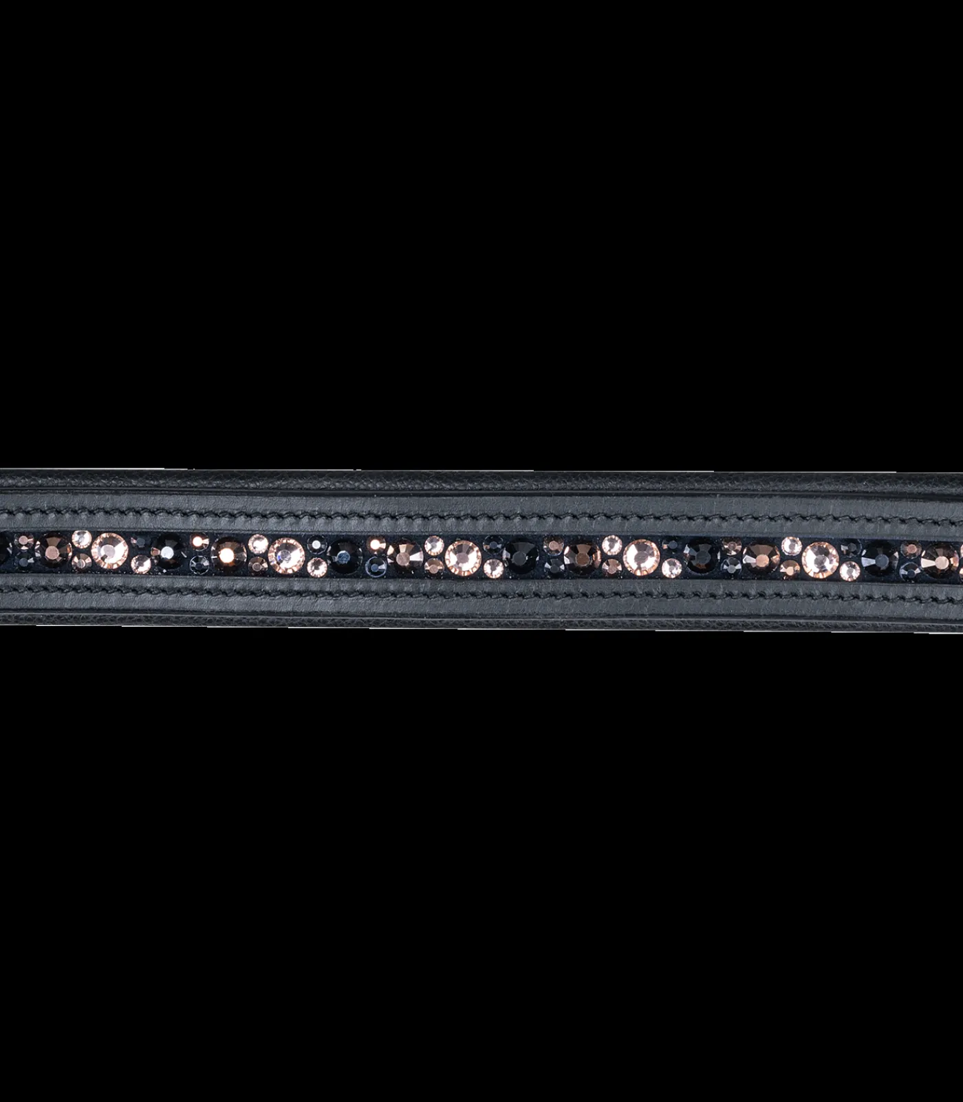 Elegantes Lederhalfter mit weich gepolstertem Nasenriemen und Genickstück. Mit dekorativen Glitzersteinen auf dem Nasenriemen. Beidseitig verstellbares Genickstück und einfach verstellbarer Kinnriemen.