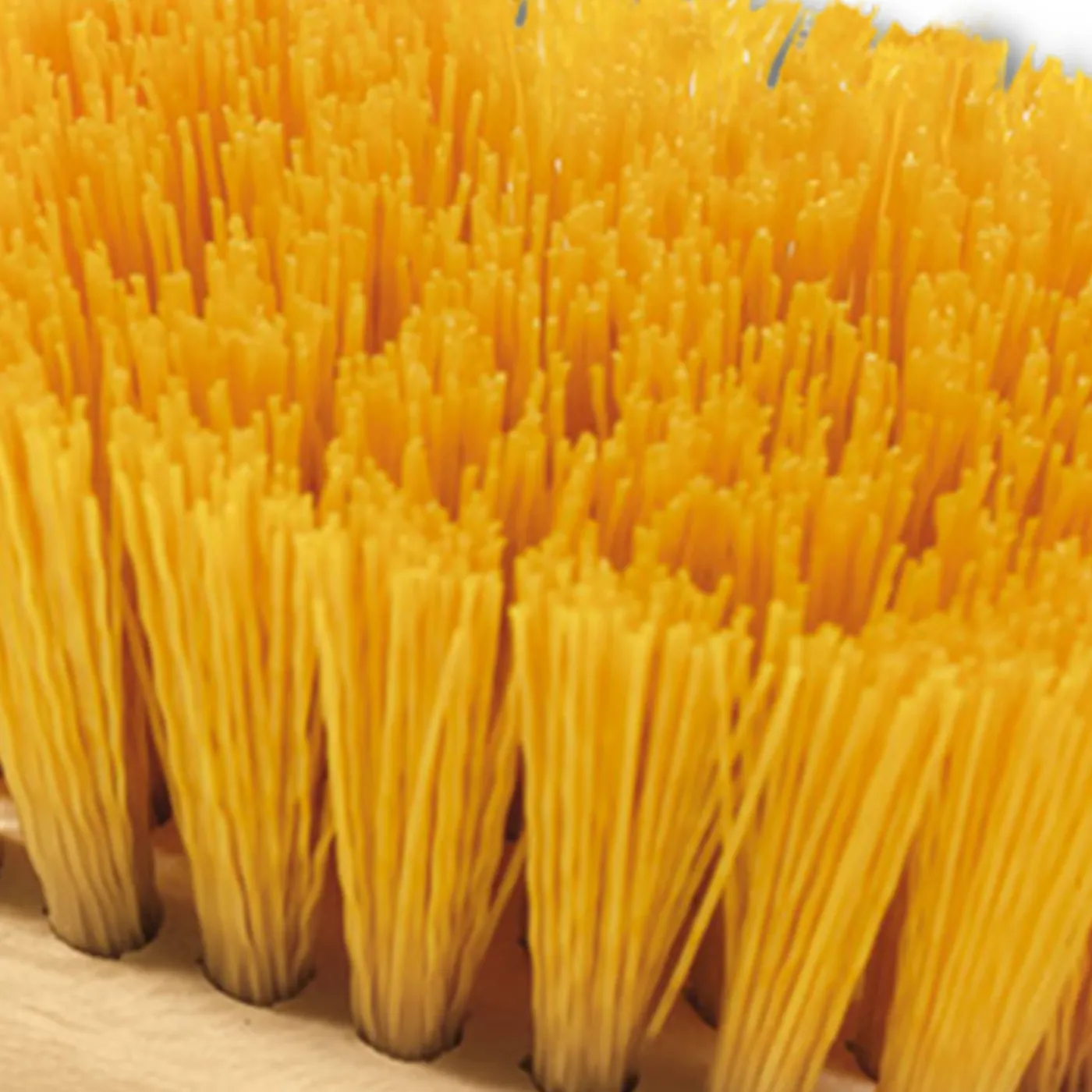 Starke Synthetikborsten mit langem Holzstiel zur mühelosen Reinigung der Hufe.