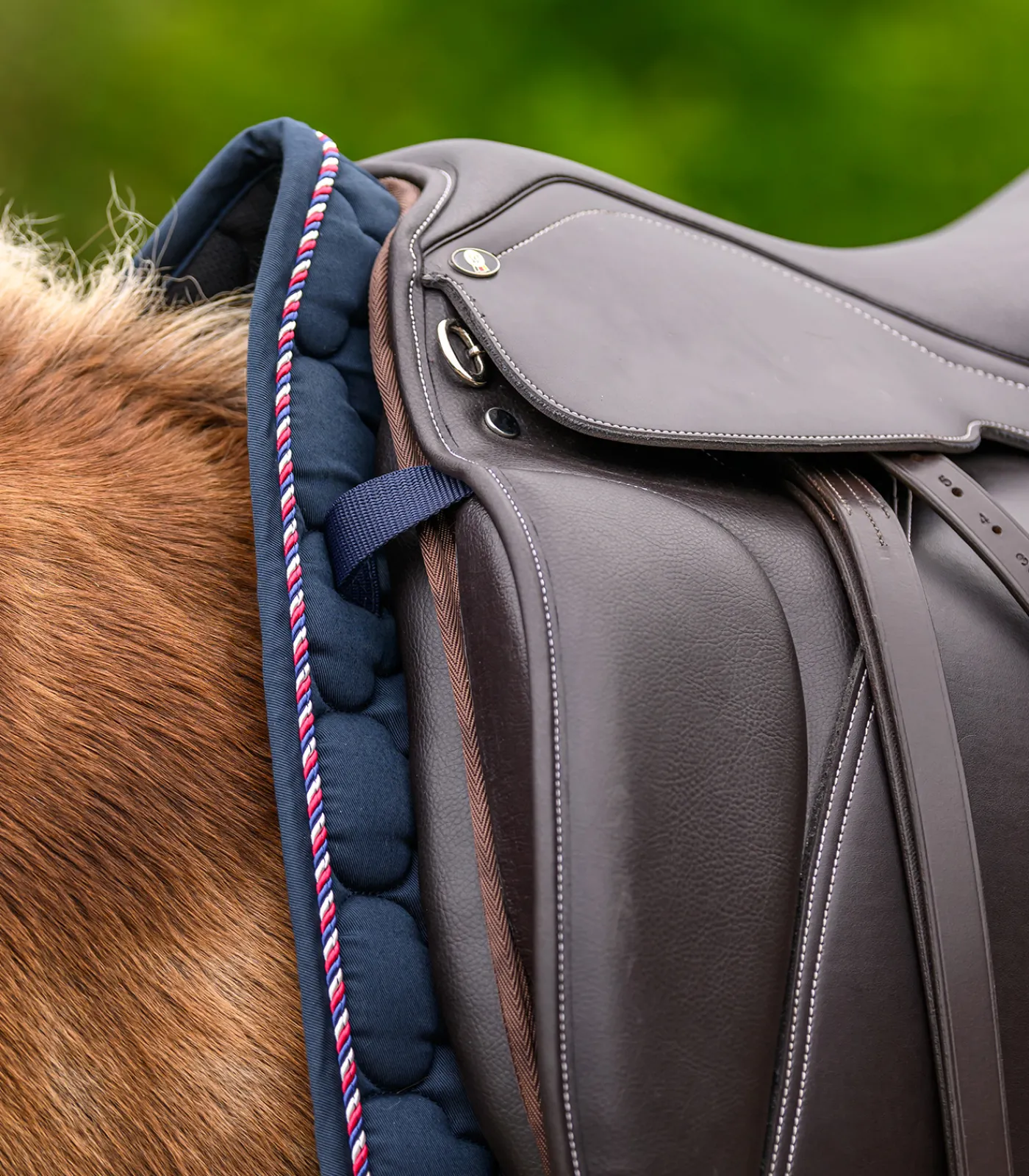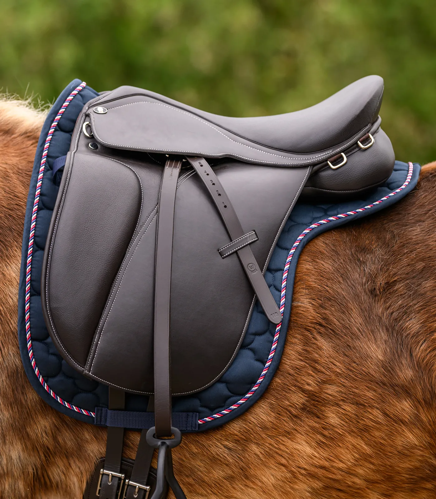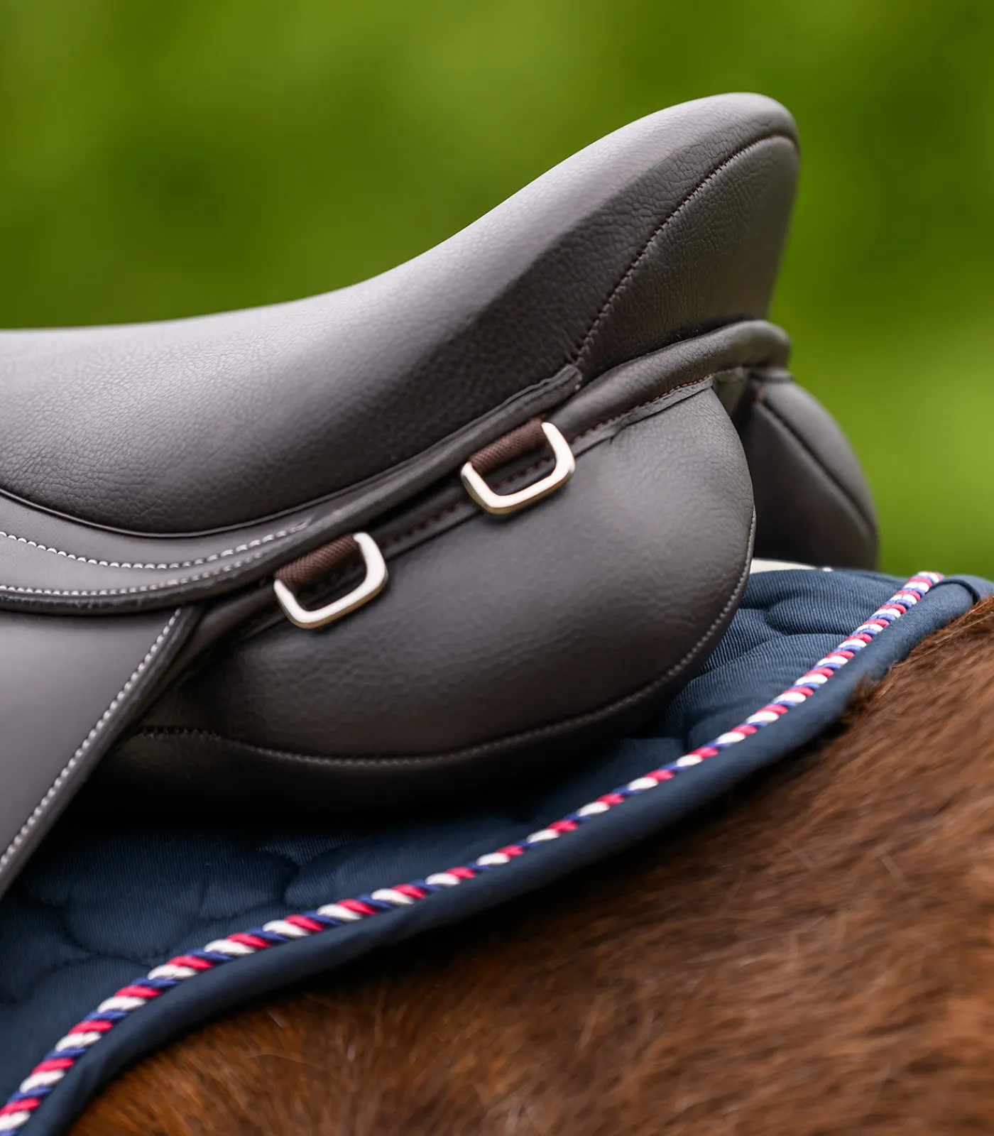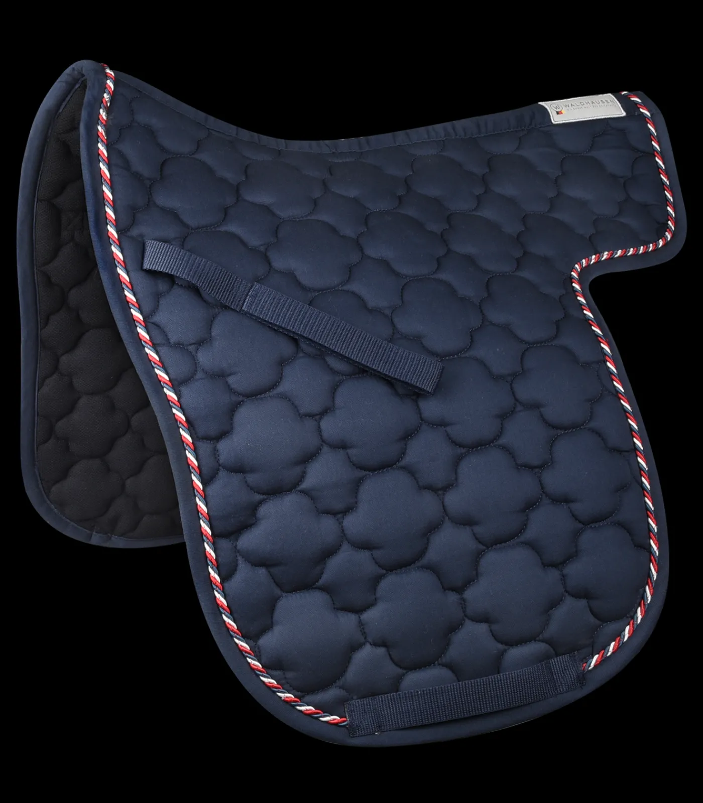 Anatomisch geformte Satteldecke mit floraler Steppung und Zierkordel. Unterseite aus schweißabsorbierendem und atmungsaktivem Material. 300 g/m² Wattierung und 8mm Schaum sorgen für hervorragenden Druckausgleich und Stoßabsorption. Sattel- und Gurtschlaufen mit praktischem Klettverschluss