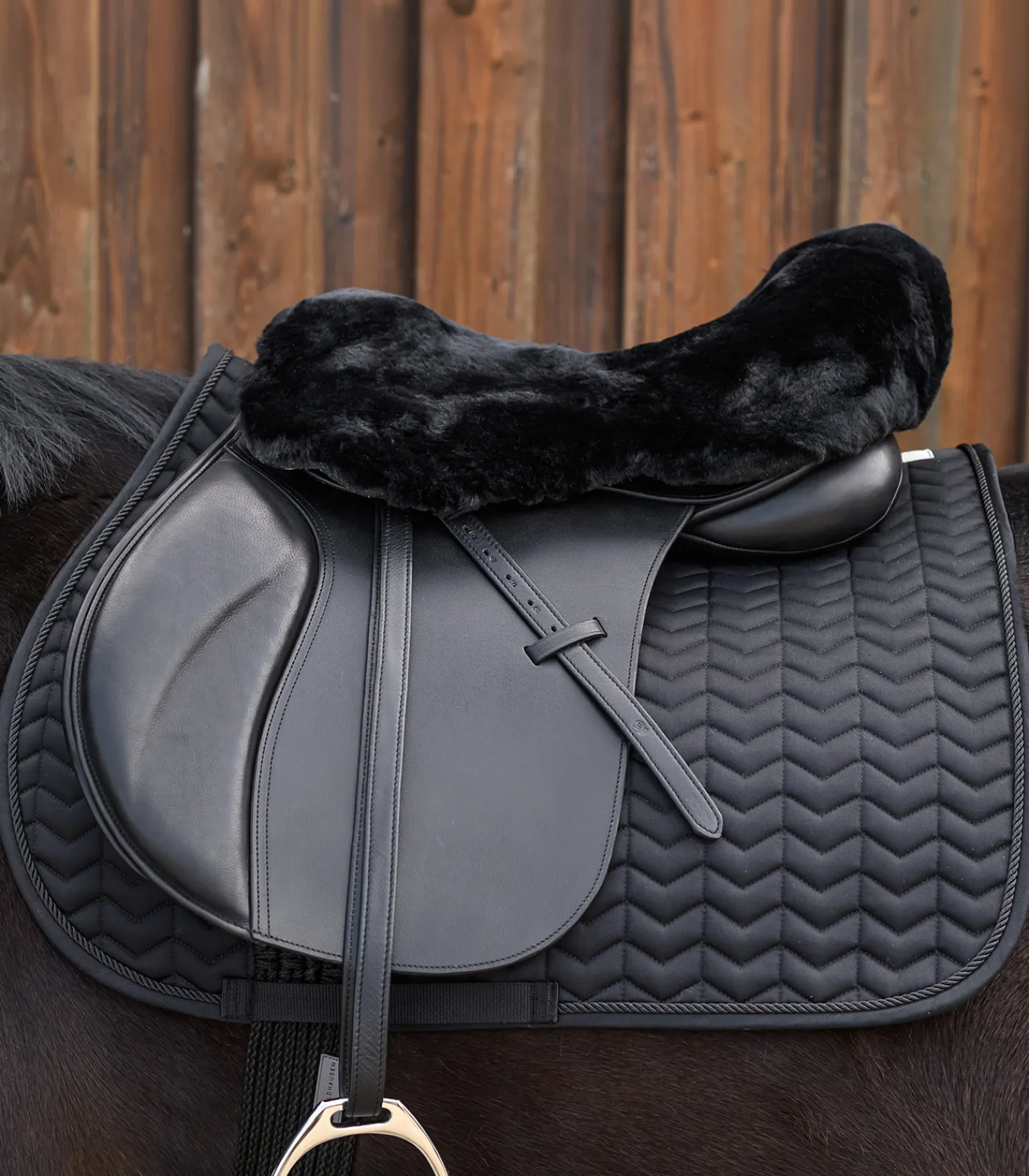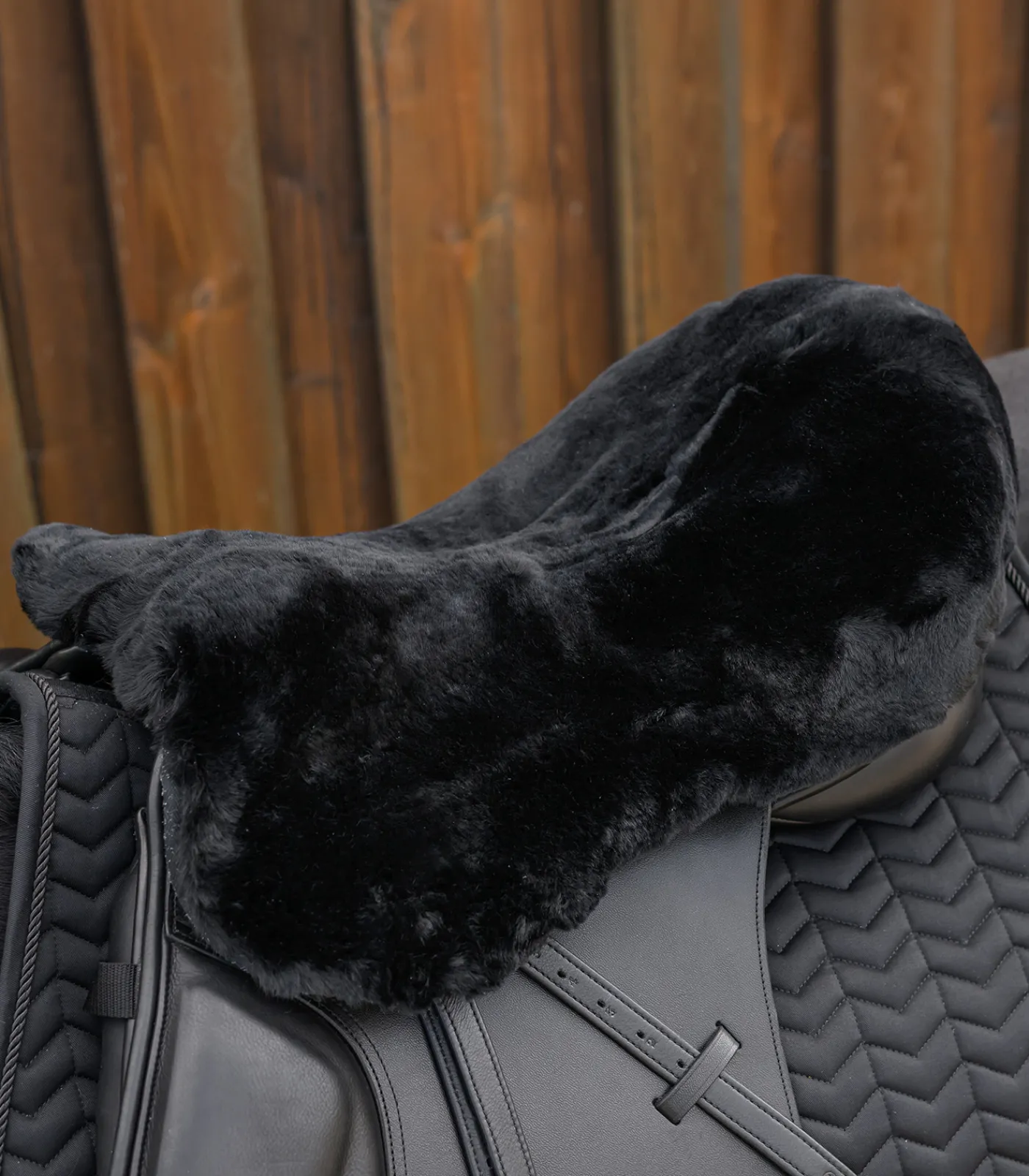 Sattelsitzbezug aus Lammfell für optimalen Sitzkomfort. Praktische Befestigung mit elastischen Bändern und einer regulierbaren Klettstrippe. Passend für englische Sättel in den Größen 42cm/16″ – 46cm/18″