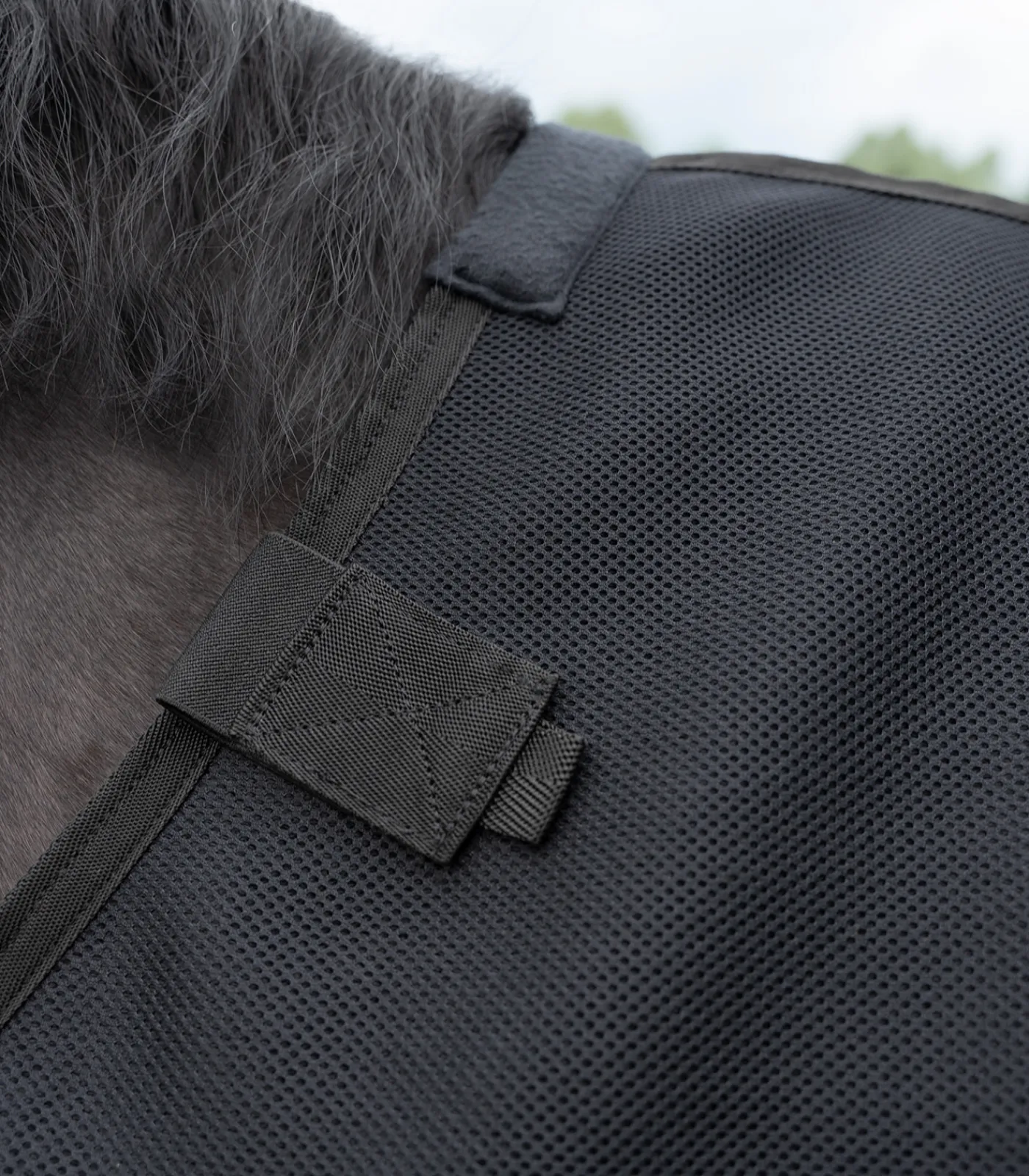 Besonders atmungsaktive Unterdecke aus Air Mesh Gewebe. Das High Tech Material bietet eine gute Belüftungs- und Abschwitzfunktion und hält das Pferd gleichzeitig warm. Ebenfalls kann das Air Mesh Gewebe einem Hitzestau vorbeugen. Mit einfachem T-Brustverschluss. Je 2 elastische Klett-Strippen im Schulterbereich und im hinteren Bereich zur einfachen Befestigung an allen Waldhausen Outdoordecken. Diese Unterdecke ist ideal bei großen Temperaturschwankungen.
