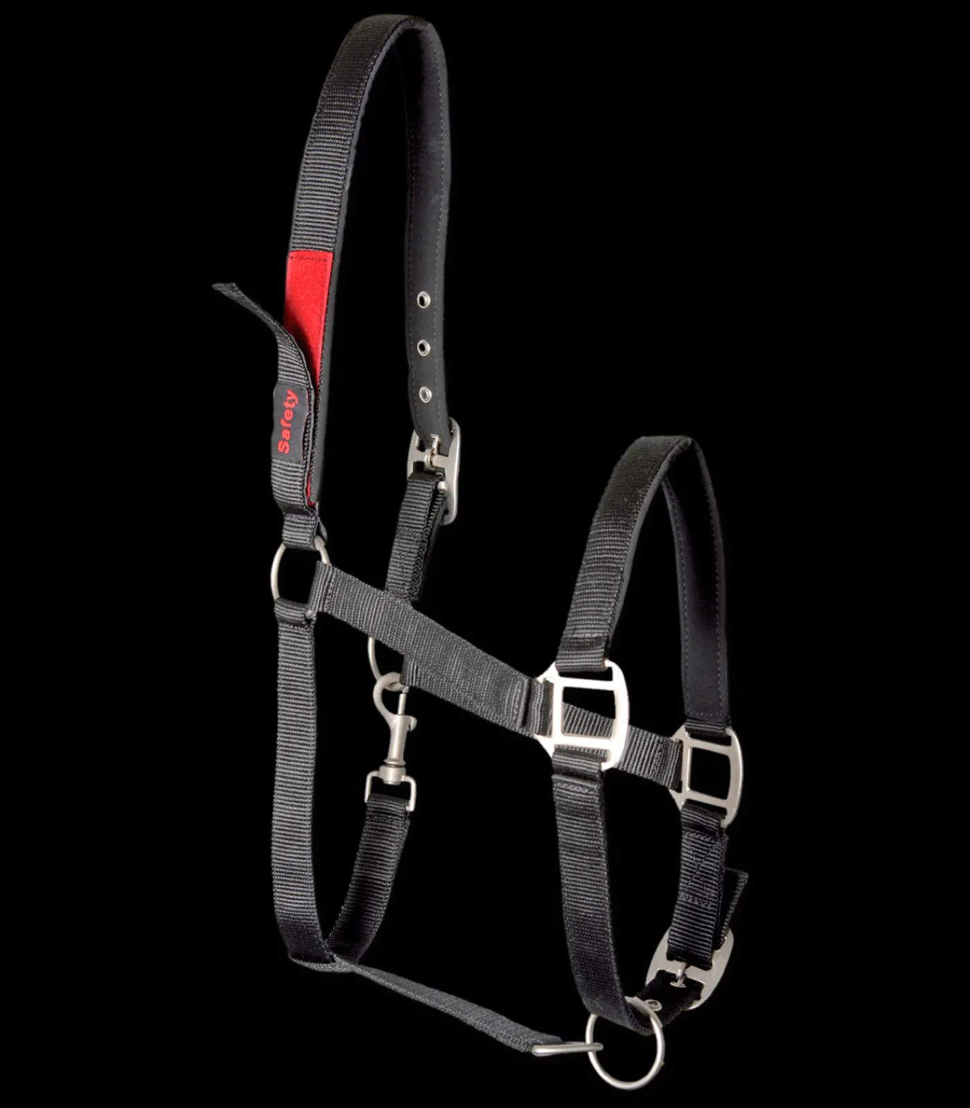 Hochwertiges Halfter mit integriertem Sicherheits-Klettverschluss am Genickstück. Ideal für den Einsatz auf Paddock und Weide. Ein gefährliches „Hängenbleiben“ wird verhindert.