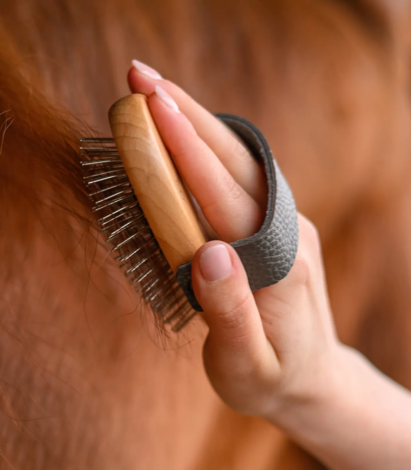Schonende Langhaarbürste, die dank ihrer abgerundeten Nadelköpfe besonders sanft zu Haut und Haar ist. Bei stark verfilztem Langhaar ist die Verwendung eines Mähnensprays vor dem Bürsten empfehlenswert.