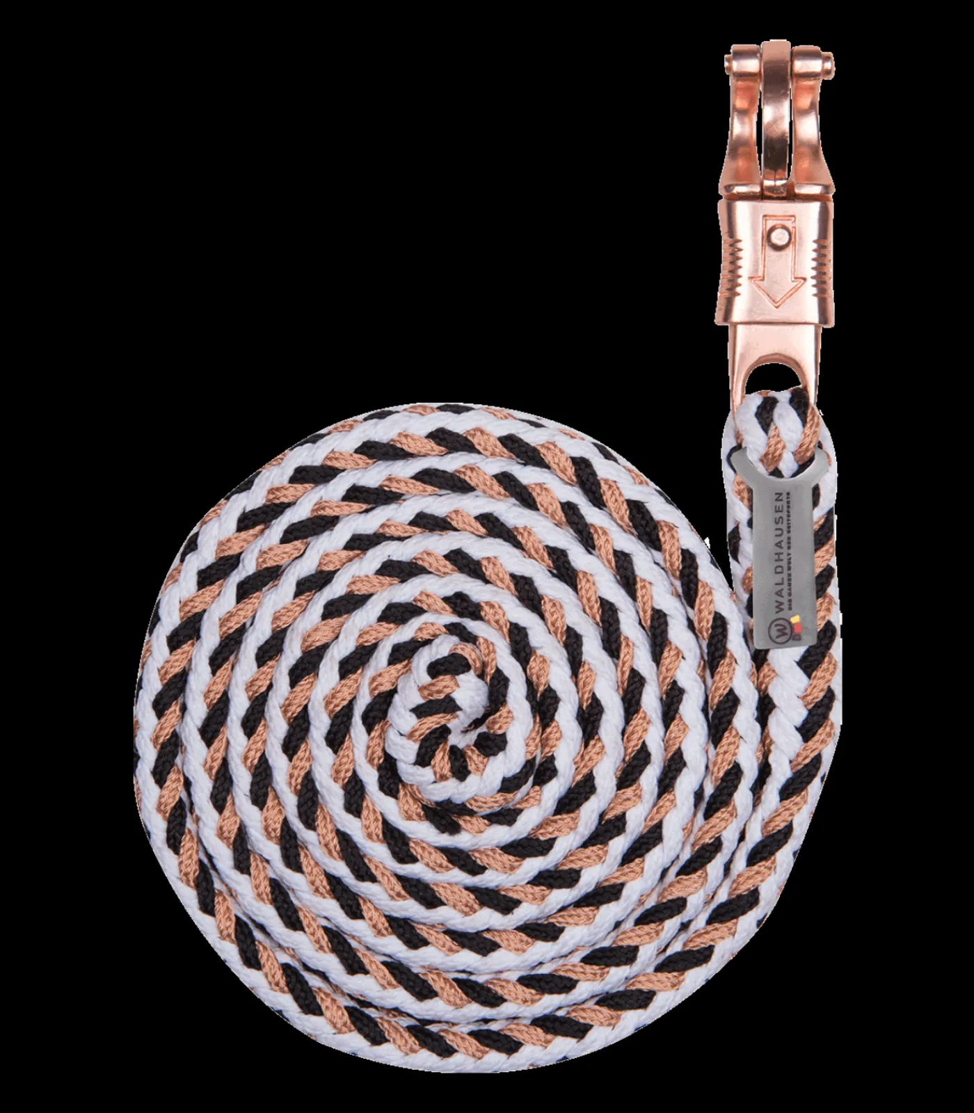 Hochwertiger Anbindestrick mit rosegoldenen Beschlägen.