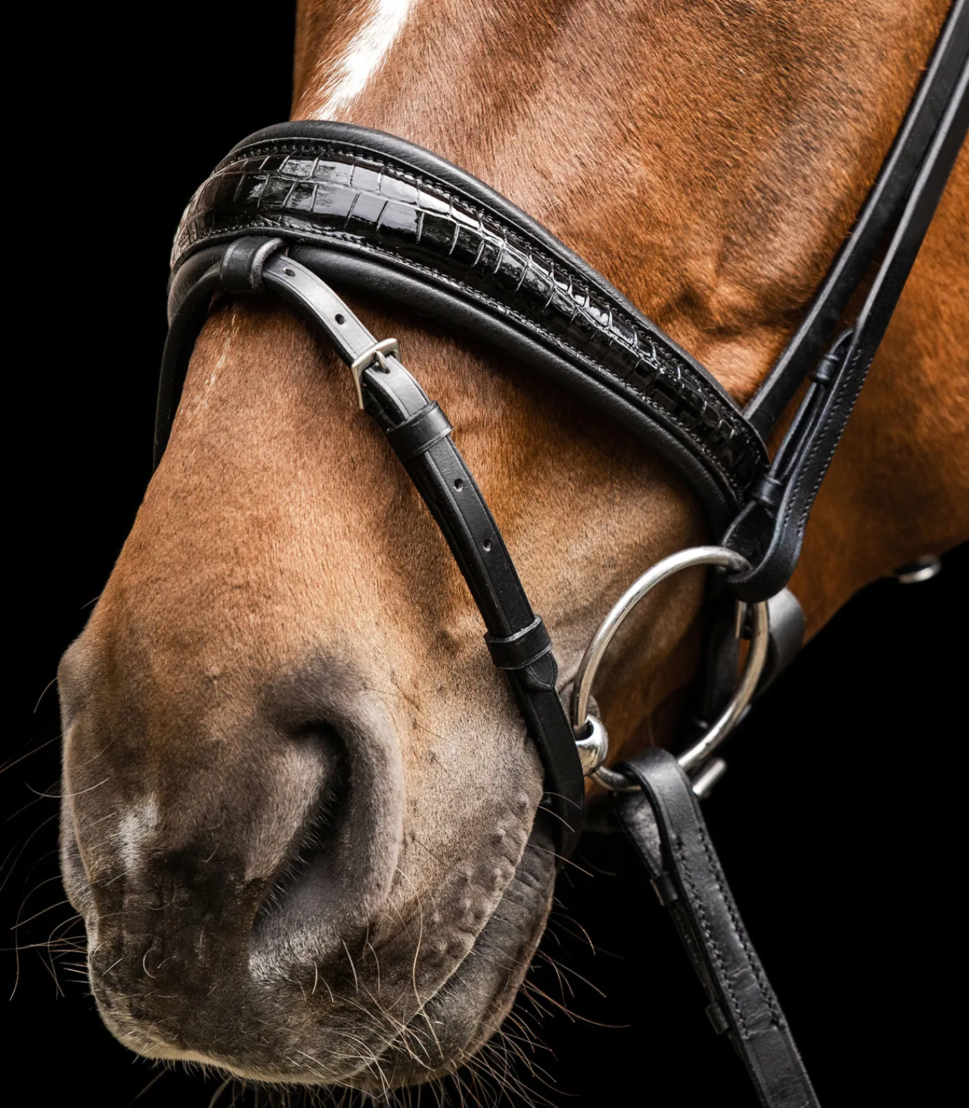 – Flach genähtes Reithalfter, Backenstücke und Kehlriemen