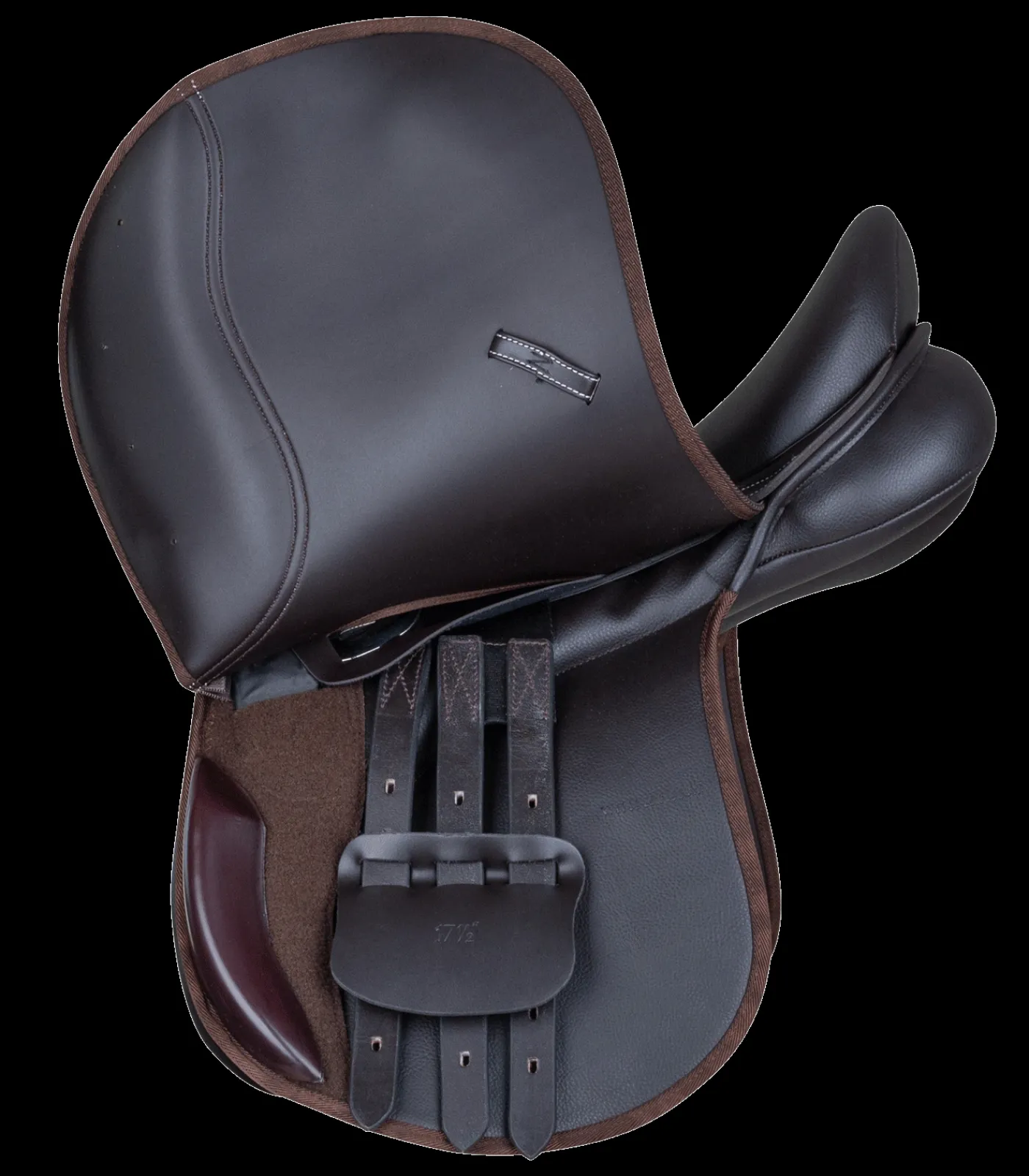 Der Waldhausen Vielseitigkeitssattel aus synthetischem, pflegeleichtem Material mit austauschbarem Kopfeisen und verstellbaren Pauschen zu einem hervorragenden Preis-Leistungs-Verhältnis. Lieferung ab Werk mit grünem Kopfeisen.