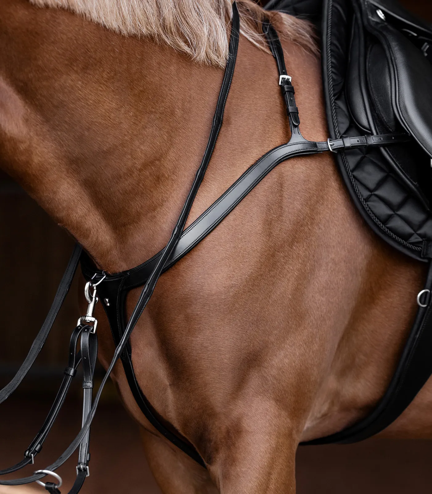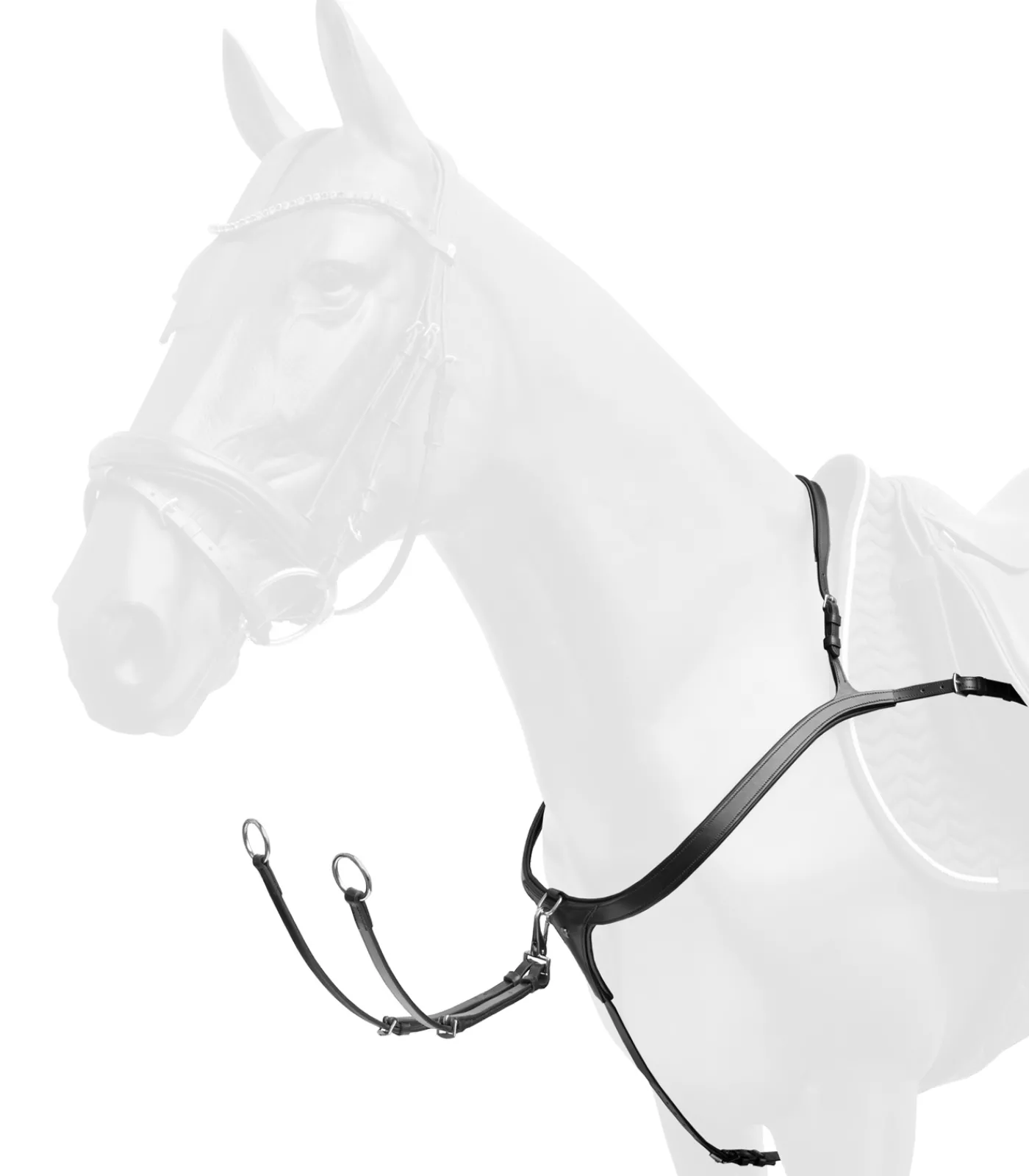 Hochwertiges Vorderzeug mit anatomischem Schnitt – optimale Stabilität und Bewegungsfreiheit. Das Waldhausen X-Line Vorderzeug mit langer Brücke und tiefem 3-Punkt verhindert ein Verrutschen des Sattels, ohne das Pferd zu stören. Der anatomische Schnitt ermöglicht eine uneingeschränkte Bewegungsfreiheit der Schulter und bietet gleichzeitig einen optimalen Halt des Sattels. Die Befestigung erfolgt an drei Punkten: Am Sattelgurt mit einem verstellbaren Lederriemen sowie an den Gurtstrupfen. Das Vorderzeug kombiniert Stabilität und Komfort für das Pferd und unterstützt eine optimale Leistungsfähigkeit während des Trainings.